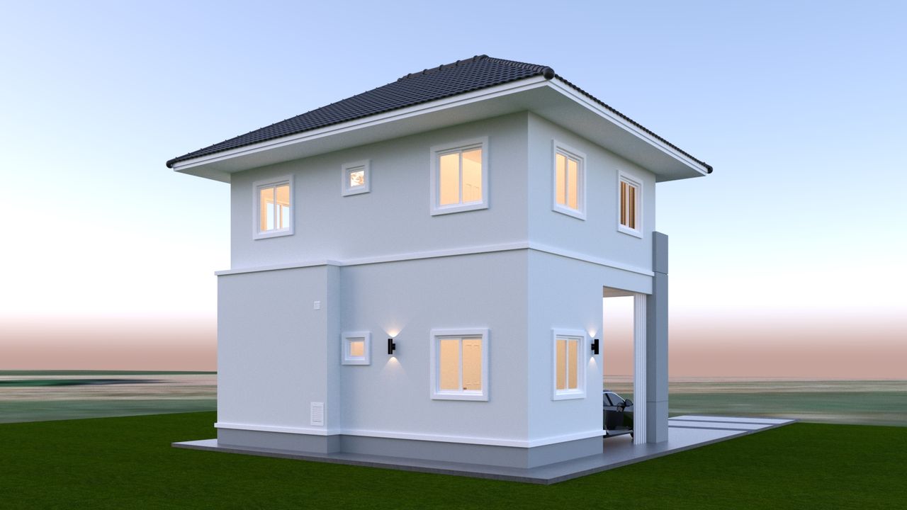 แบบบ้าน GHP400 โมเดิร์น ฟังก์ชั่น : 2 ชั้น 5 ห้องนอน 2 ห้องน้ำ 1 ห้องครัว 1 ห้องรับแขก 1ที่จอดรถ