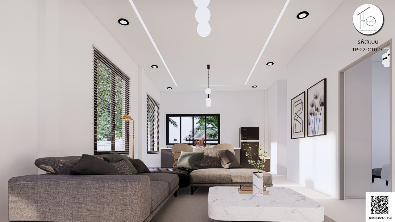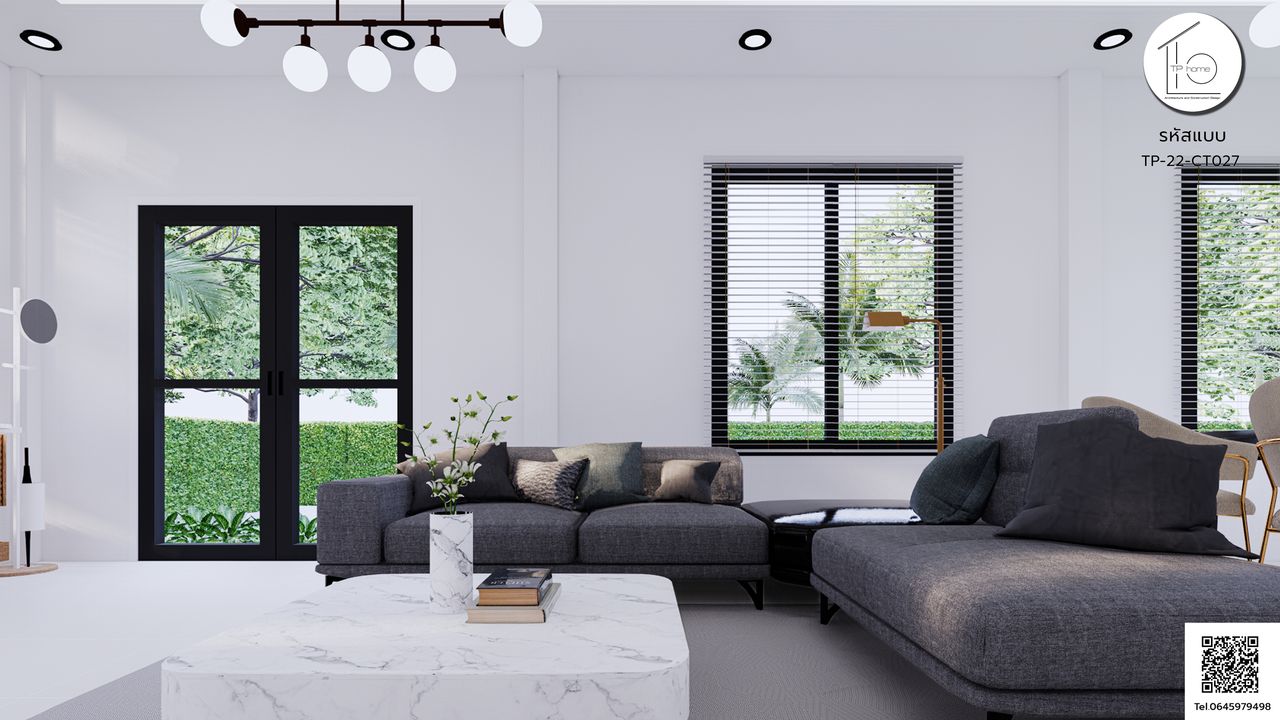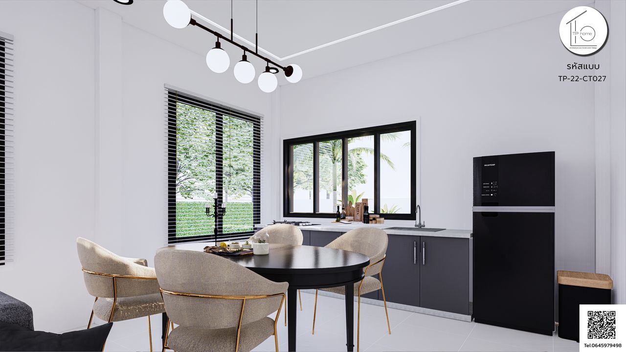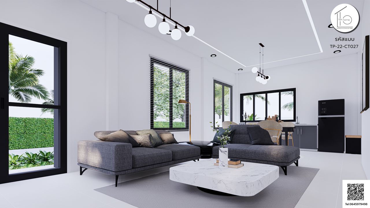 สไตล์การออกแบบ: บ้าน CT027 ออกแบบในสไตล์ Contemporary ที่เน้นความเรียบง่ายและทันสมัย การใช้เส้นสายที่คมชัดและวัสดุคุณภาพ ทำให้บ้านมีบรรยากาศโปร่งโล่งและน่าอยู่ แม้ว่าจะมีขนาดเล็กแต่ก็สามารถใช้งานได้ครบครัน ตอบสนองทุกความต้องการของครอบครัวเล็ก