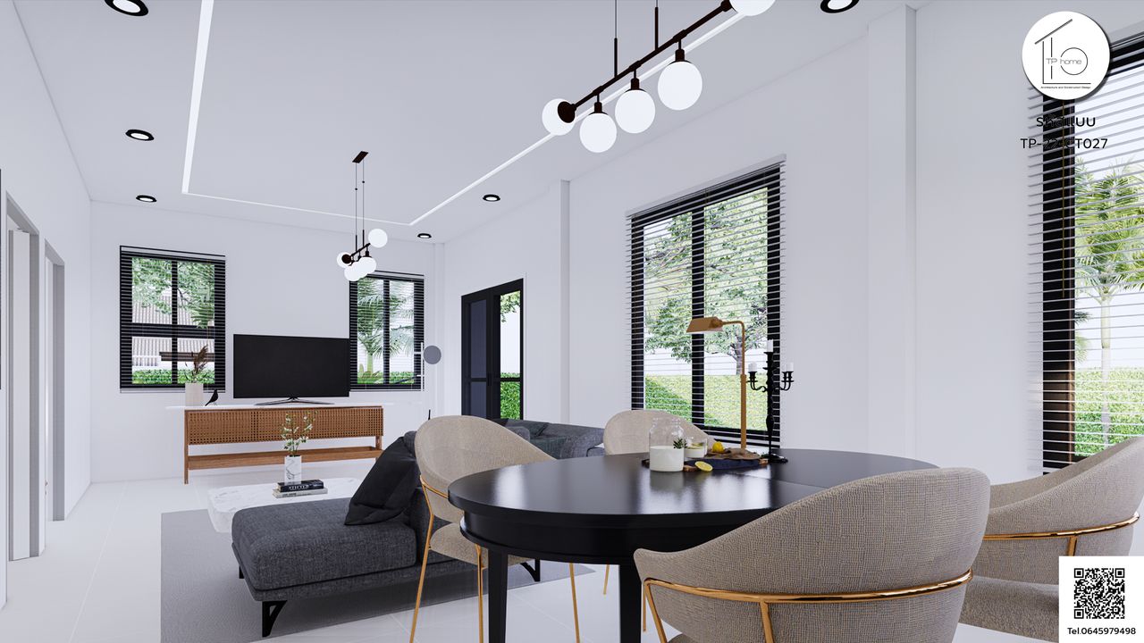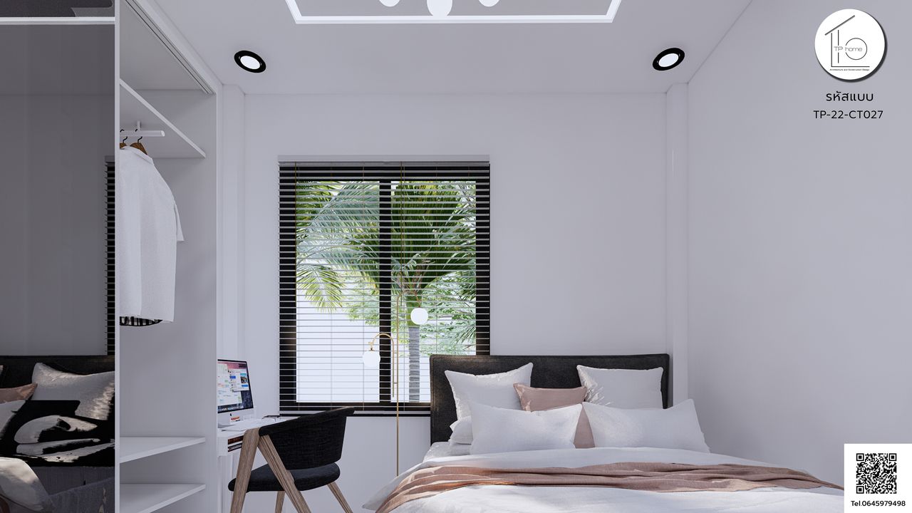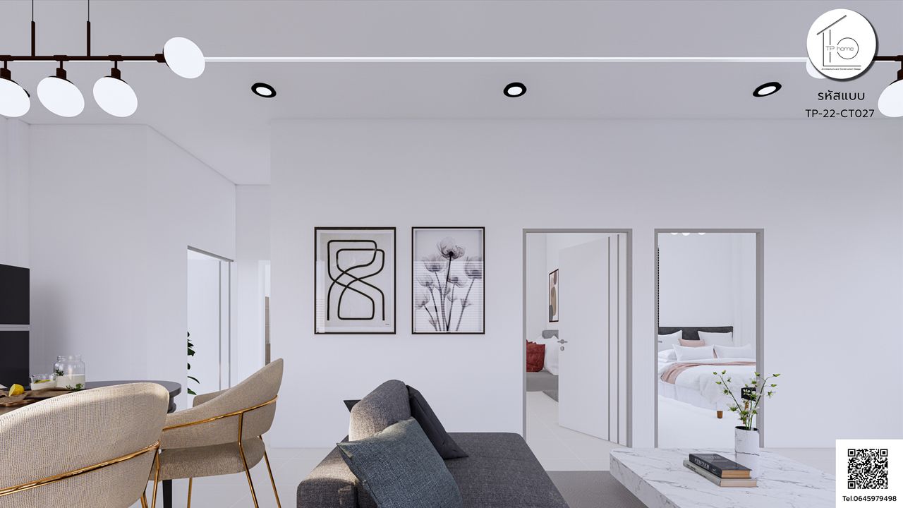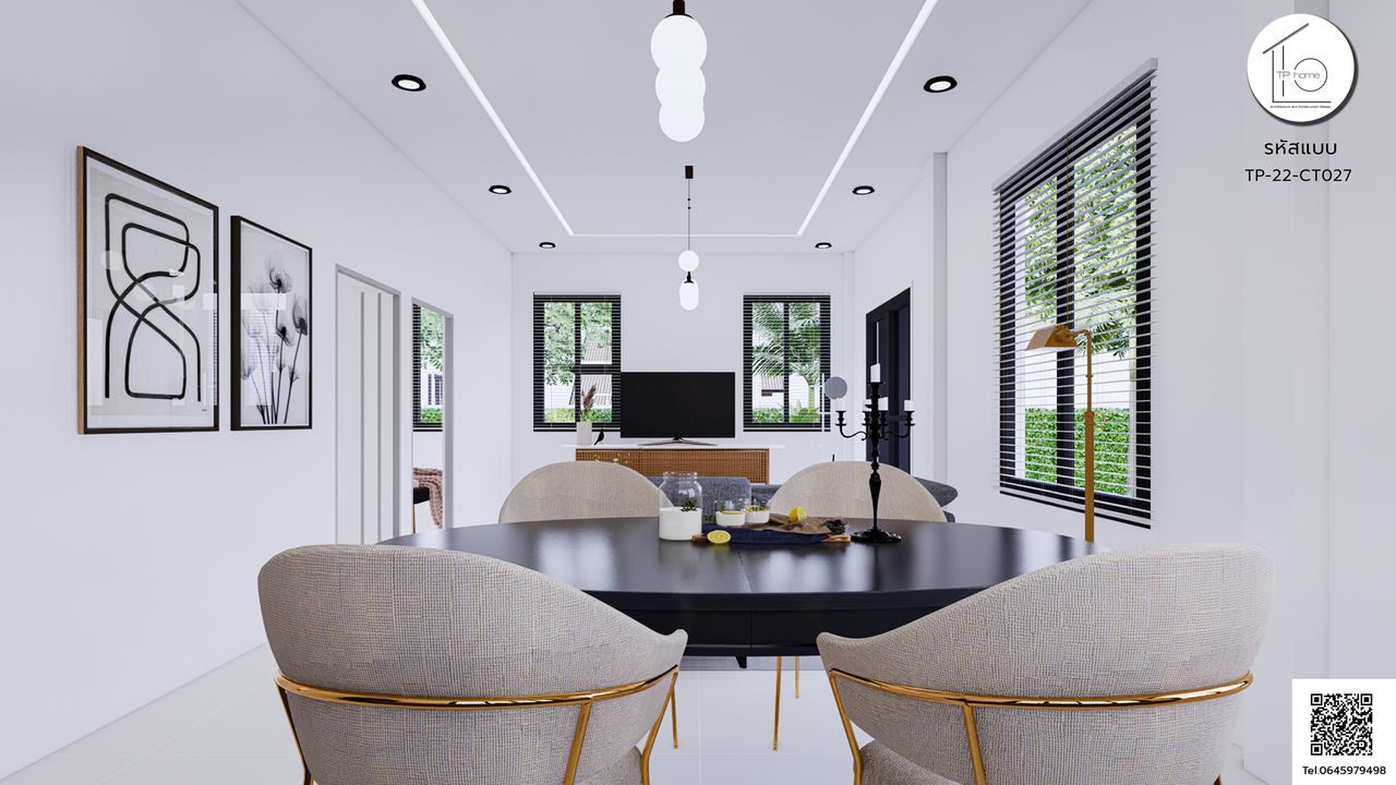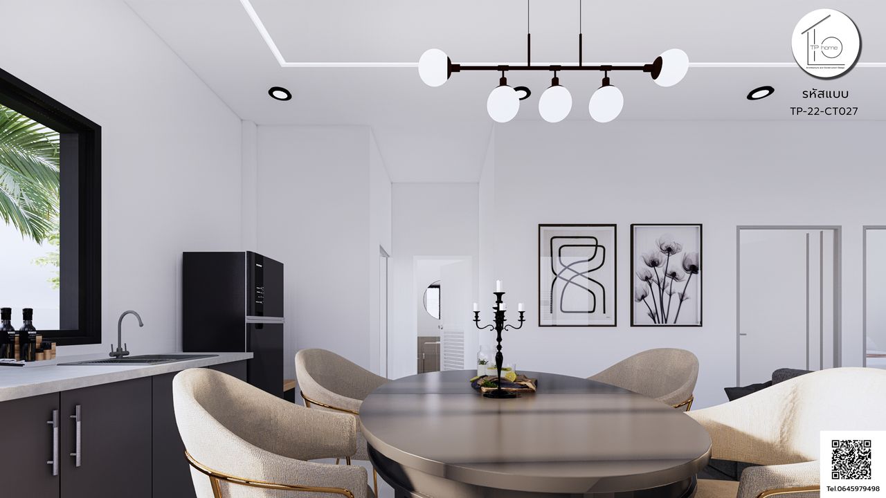 สไตล์การออกแบบ: บ้าน CT027 ออกแบบในสไตล์ Contemporary ที่เน้นความเรียบง่ายและทันสมัย การใช้เส้นสายที่คมชัดและวัสดุคุณภาพ ทำให้บ้านมีบรรยากาศโปร่งโล่งและน่าอยู่ แม้ว่าจะมีขนาดเล็กแต่ก็สามารถใช้งานได้ครบครัน ตอบสนองทุกความต้องการของครอบครัวเล็ก