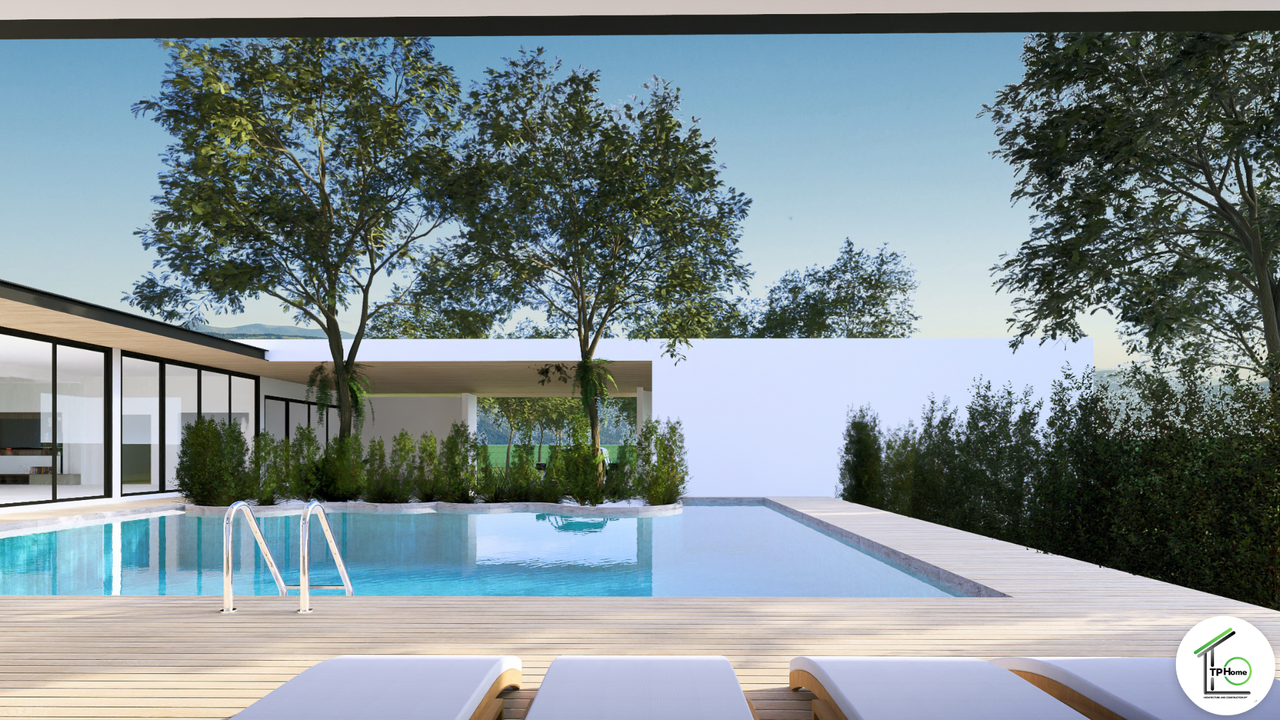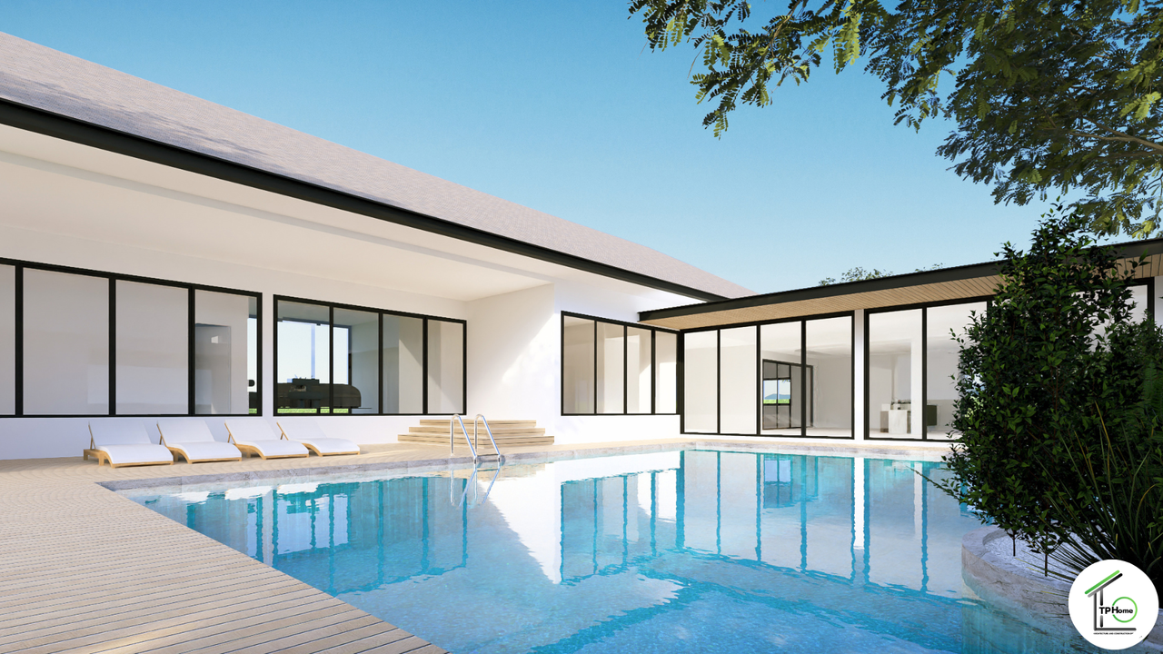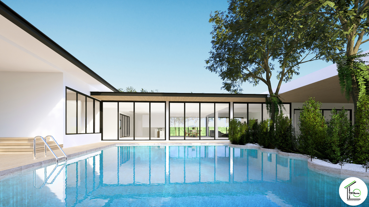 บ้านชั้นเดียว Modern พร้อมสระว่ายน้ำ