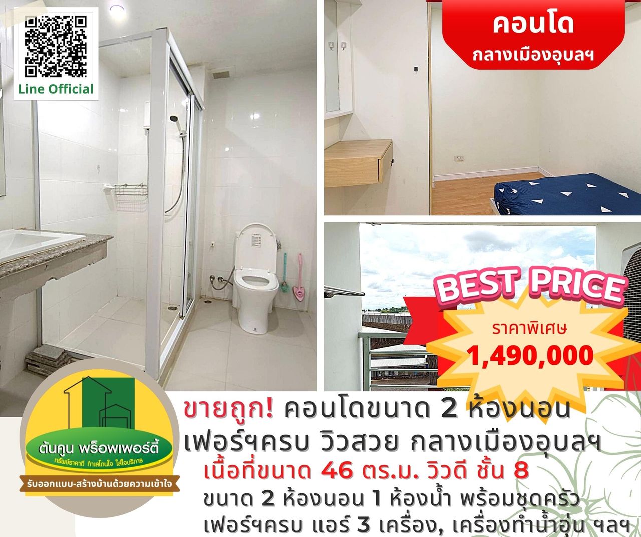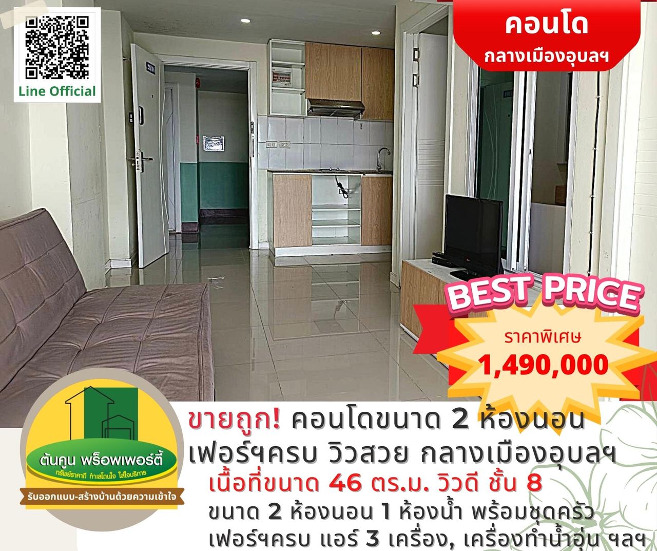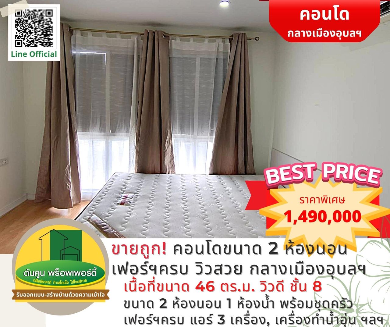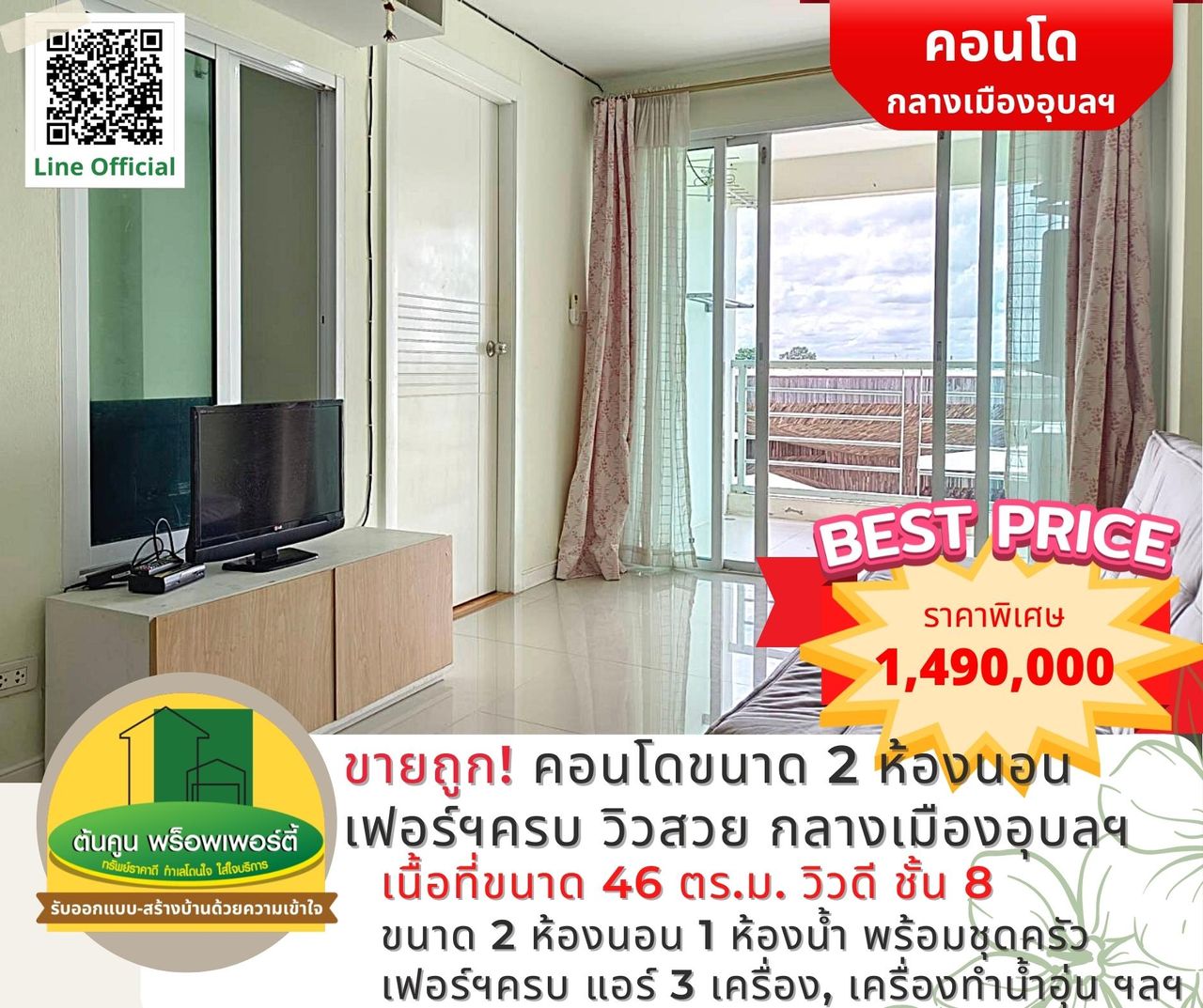 ขายถูก! คอนโดขนาด 2 ห้องนอน เฟอร์ฯครบ ใจกลางเมืองอุบลฯ เดินทางสะดวก