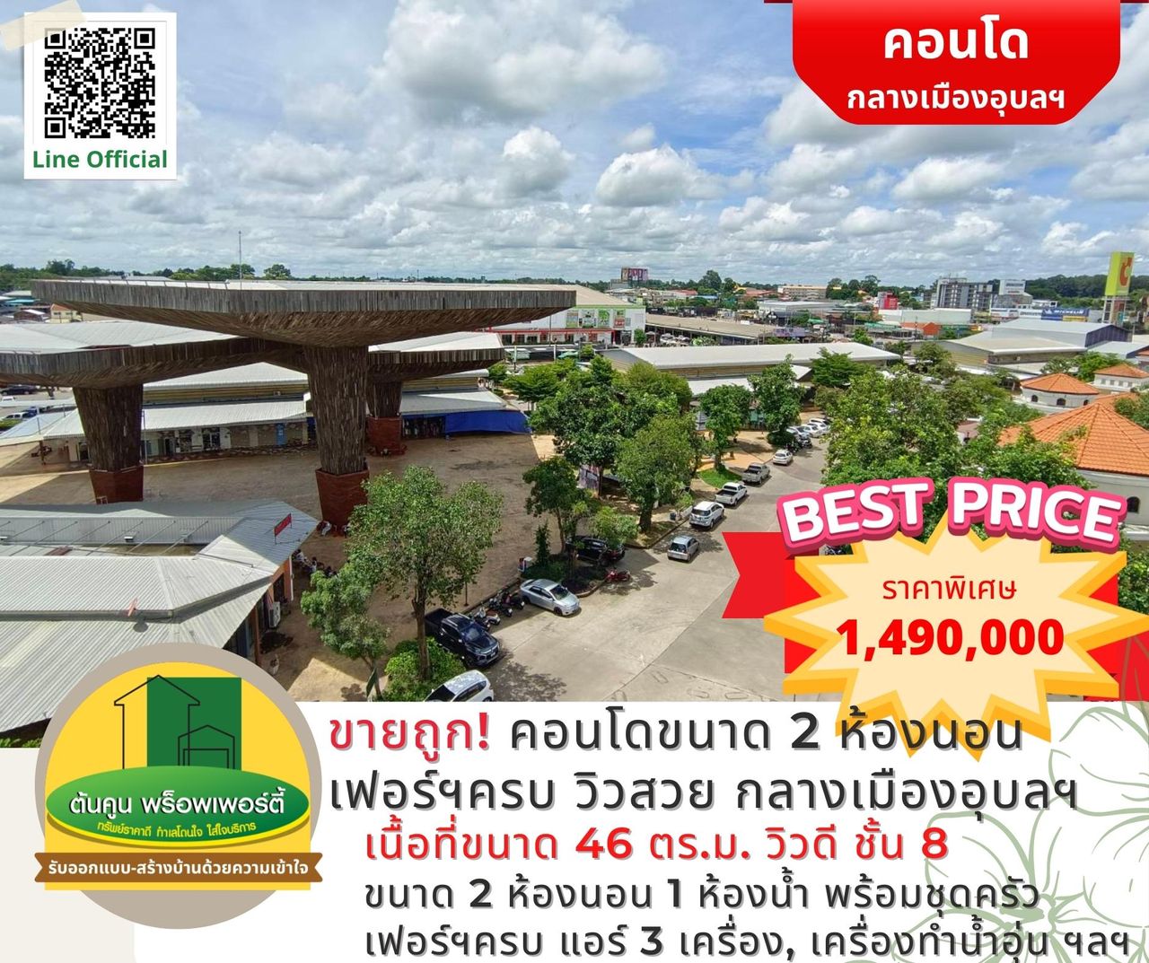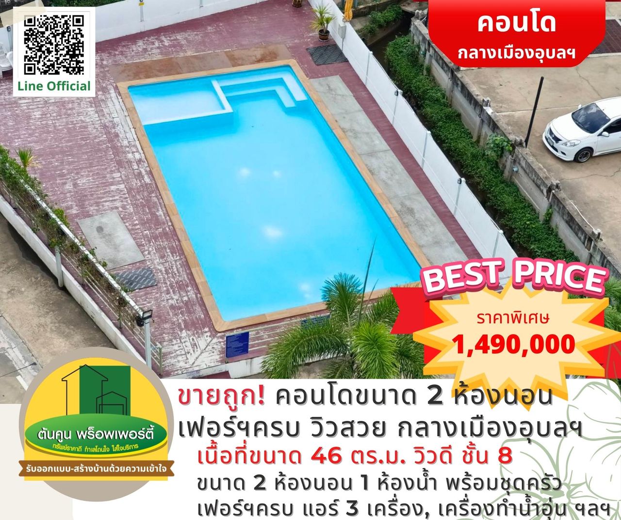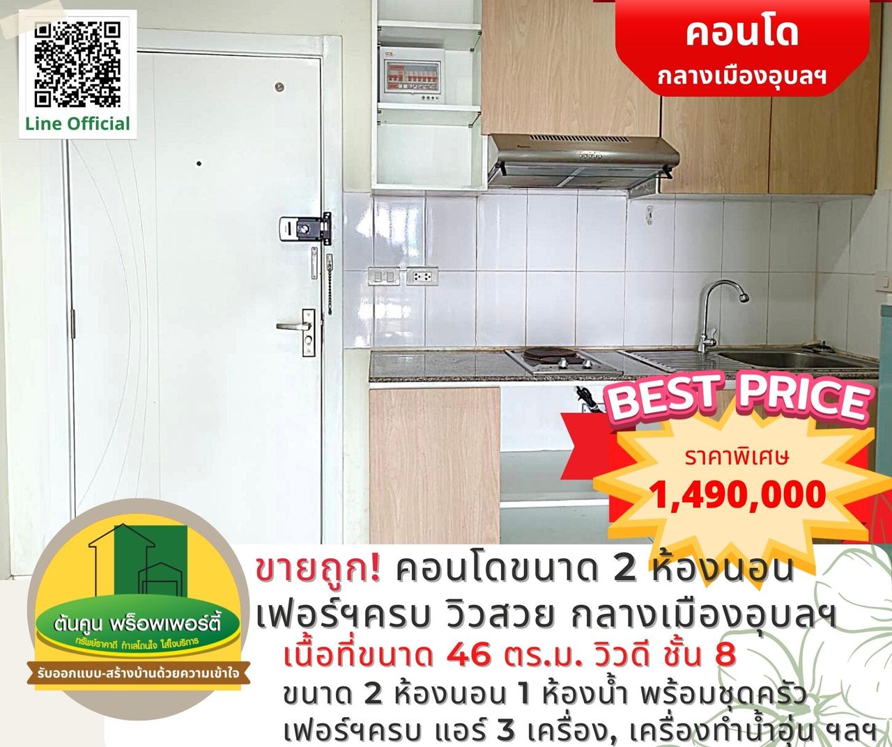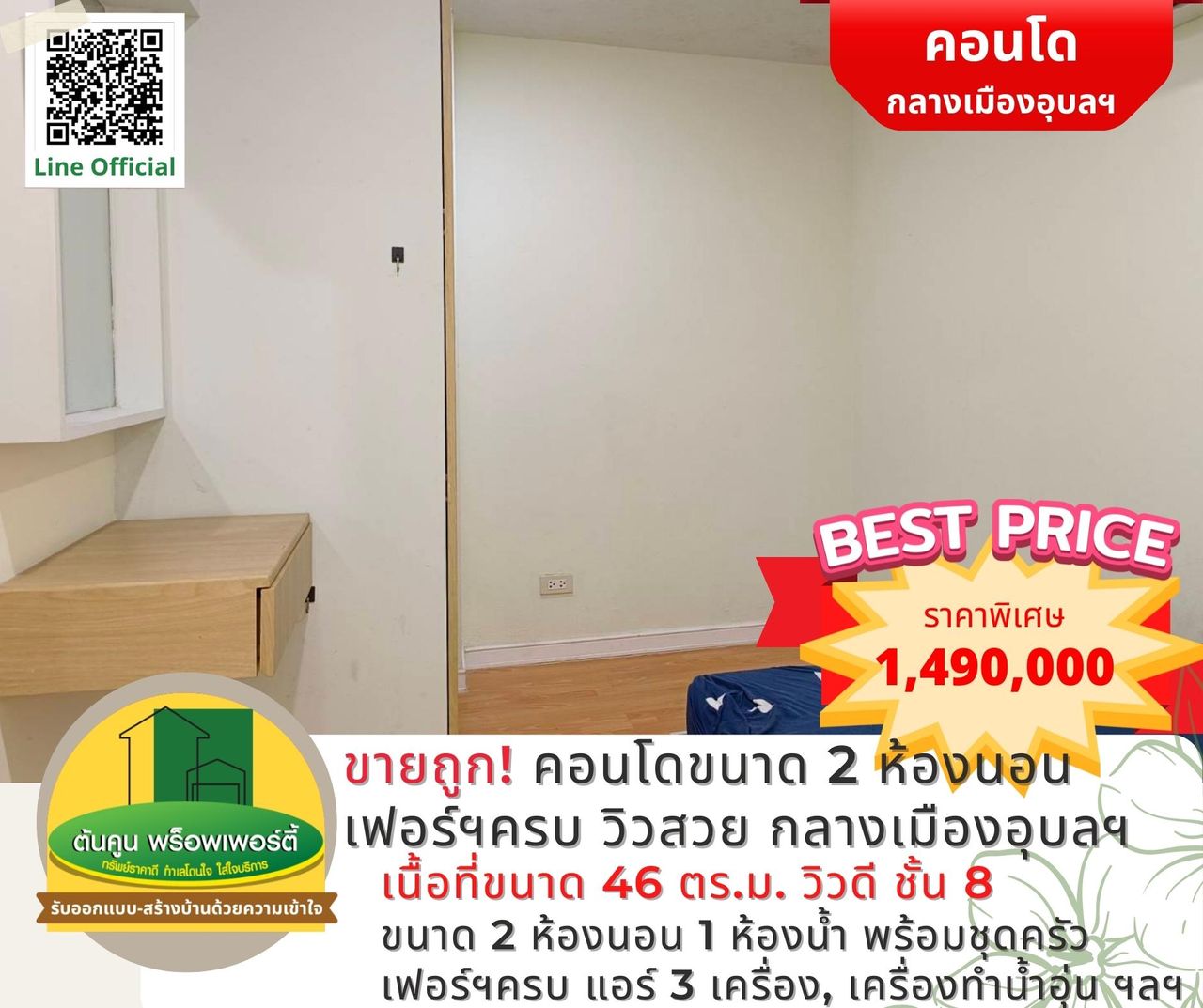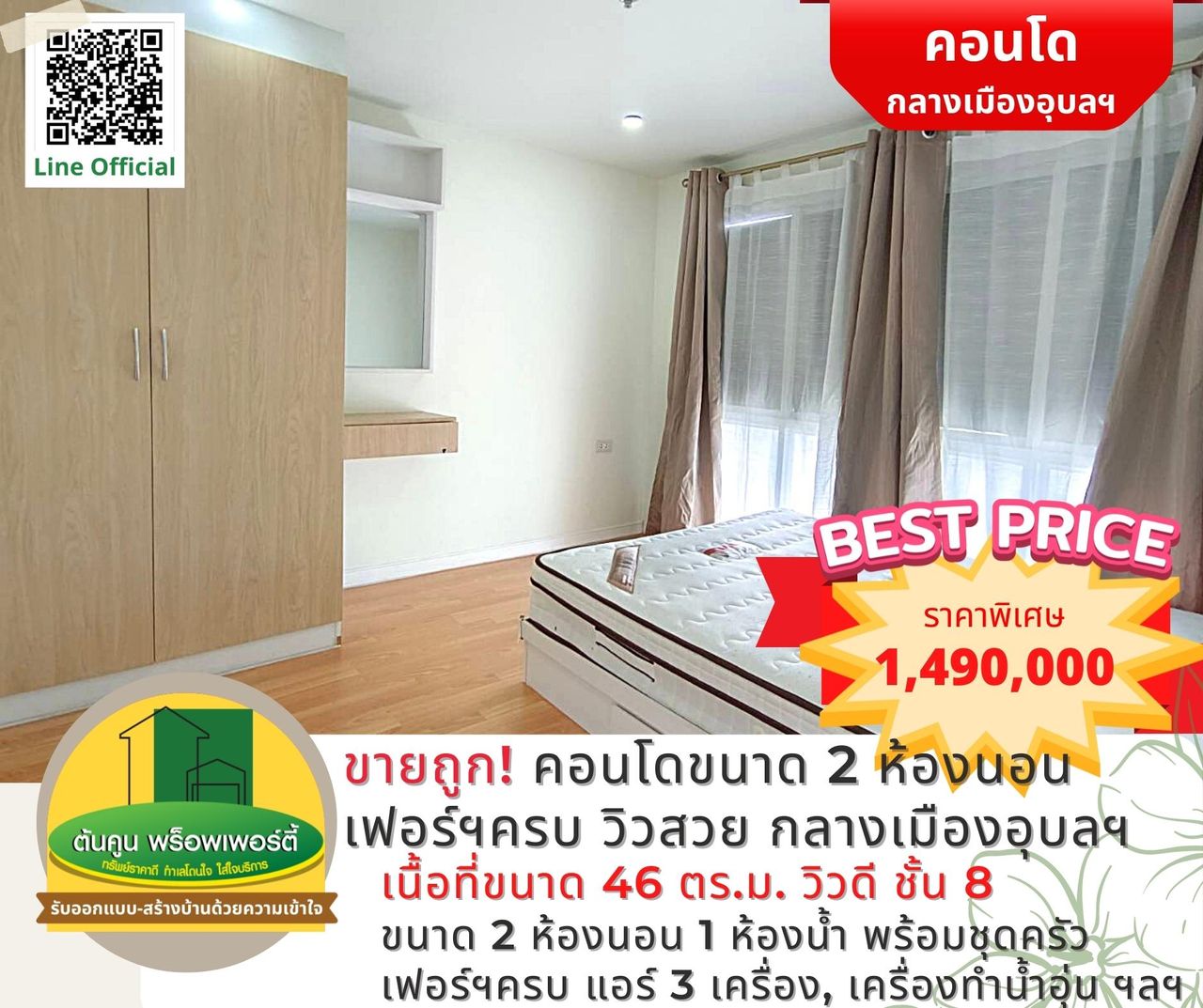 ขายถูก! คอนโดขนาด 2 ห้องนอน เฟอร์ฯครบ ใจกลางเมืองอุบลฯ เดินทางสะดวก