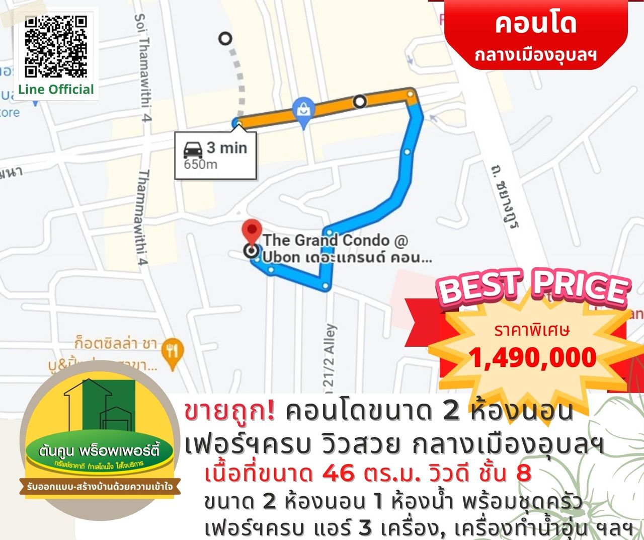 ✅ คอนโดเดอะแกรนด์ ติด Big C, อุบลสแควร์ เดินทางสะดวก