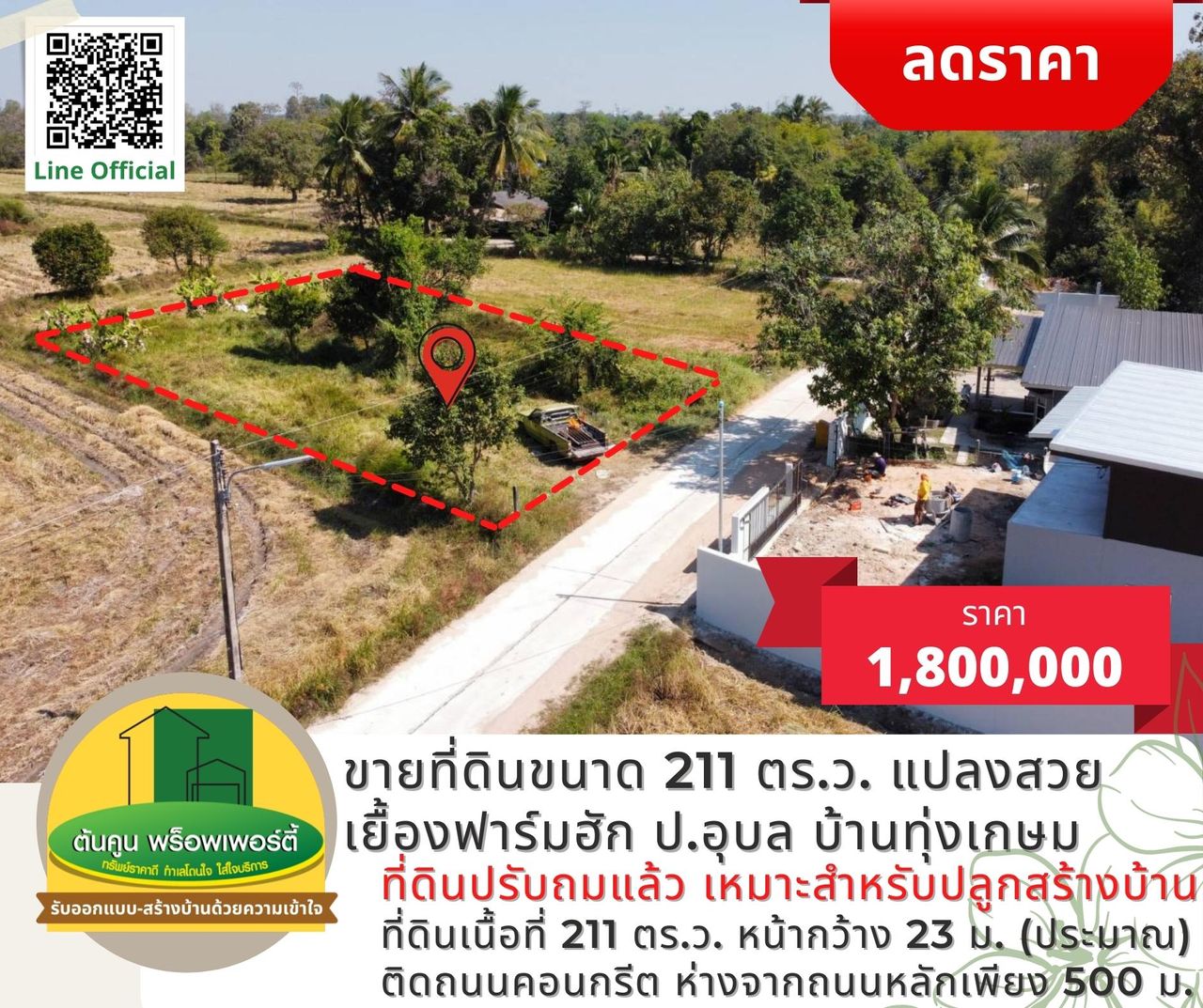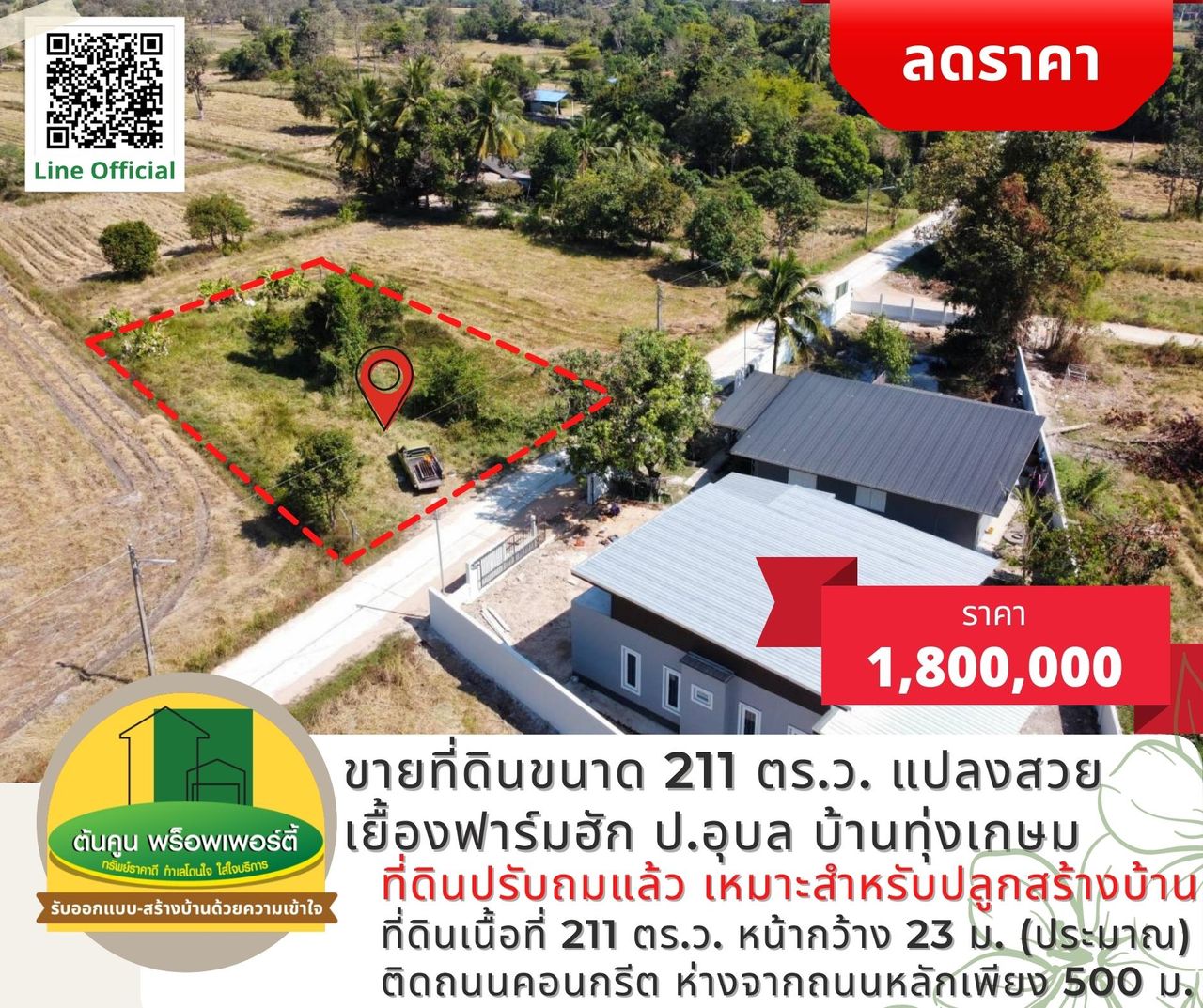 ขายที่ดินขนาด 211 ตร.ว. เดินทางสะดวก เหมาะสำหรับปลูกสร้างบ้าน ซอยเยื้องฟาร์มฮัก ป.อุบล บ้านทุ่งเกษม