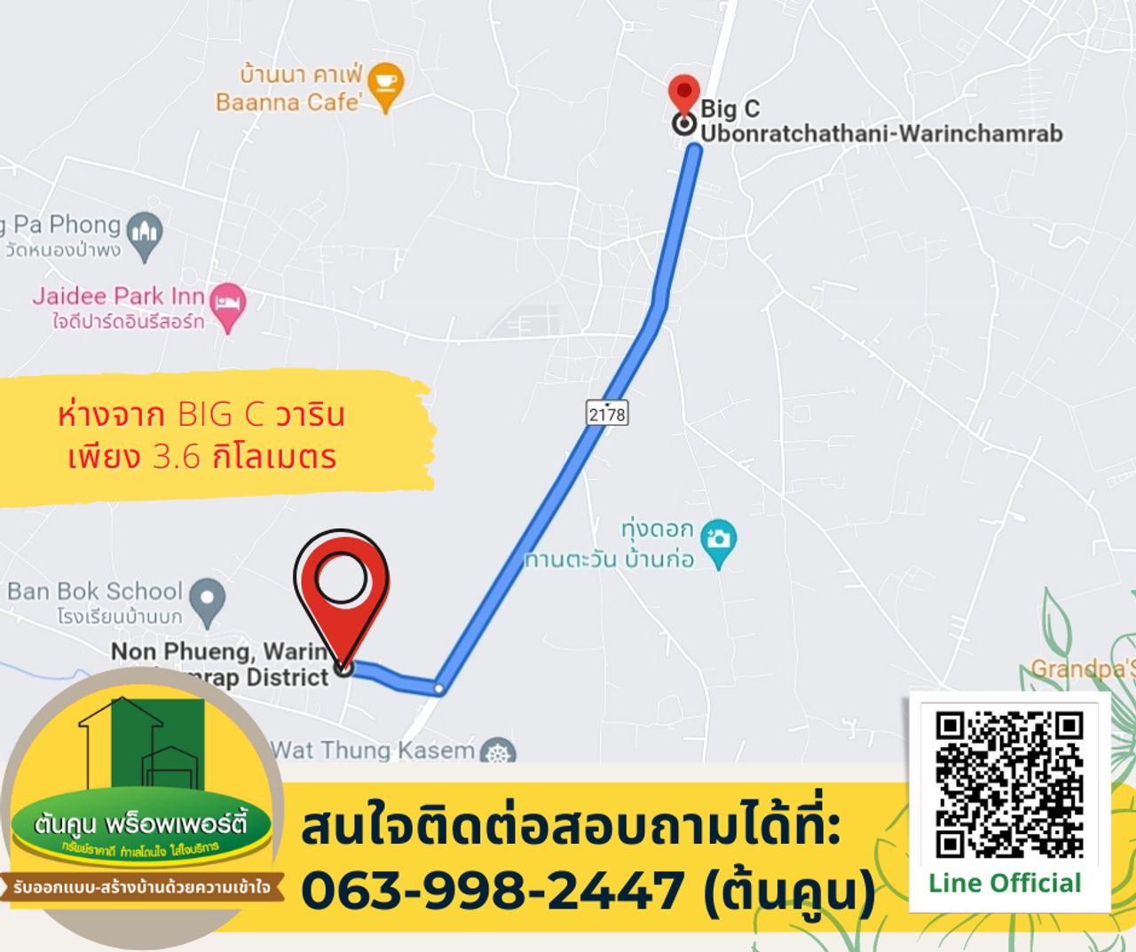✅ เดินทางจาก Big C วาริน เพียง 3.6 กม.