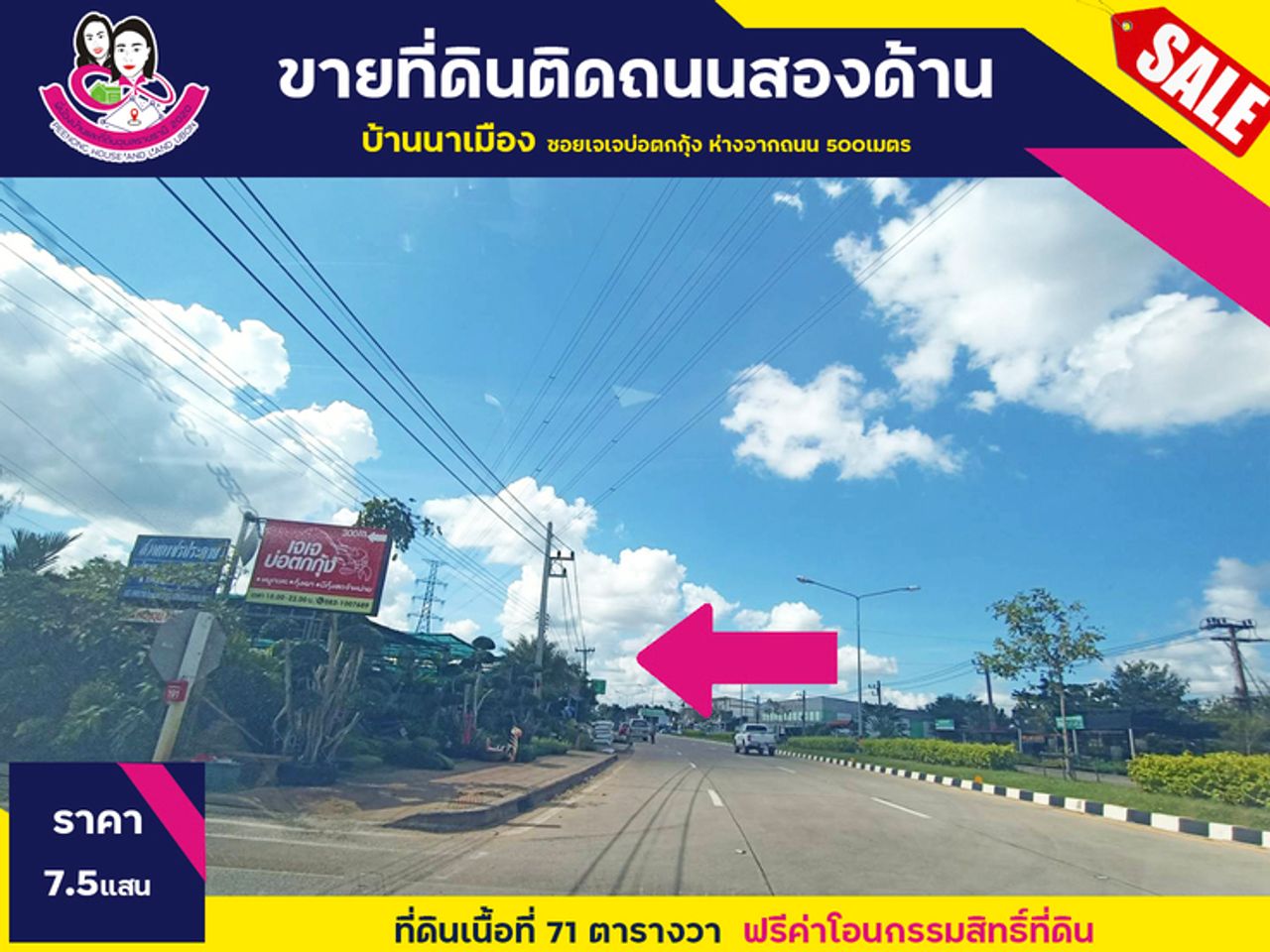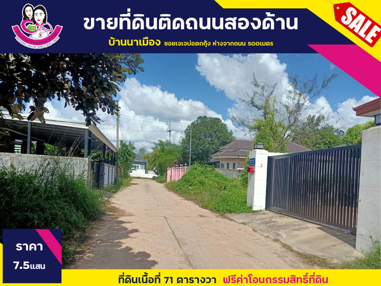 ขายที่ดินเปล่า เหมาะทำเป็นที่พักอาศัย บ้านนาเมือง ใกล้สนามบินนานาชาติ เนื้อที่ดิน 71ตารางวา โนนหงษ์ทอง - อุบลฯ ตระการ - เมืองอุบลราชธานี - ไร่น้อย