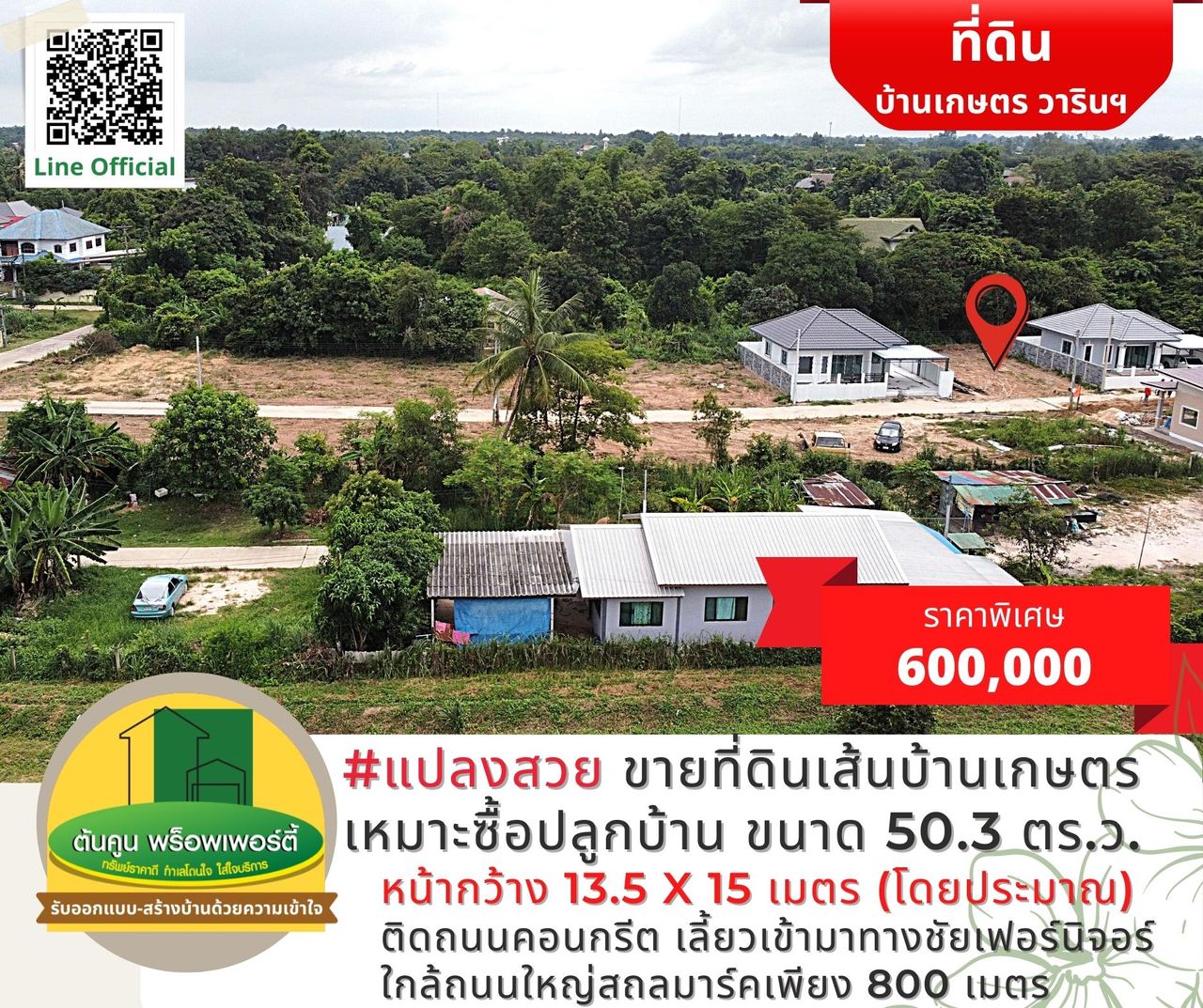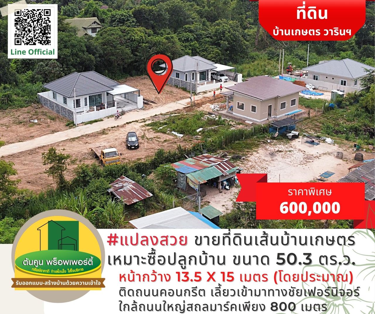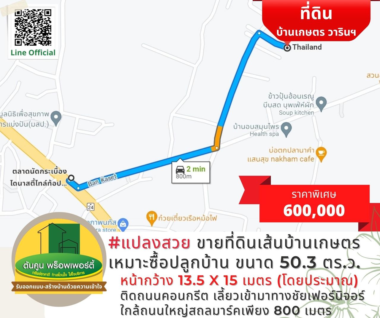 ราคาพิเศษเพียง 600,000 บาท (ค่าใช้จ่ายในการโอนกรรมสิทธิ์คนละครึ่ง)