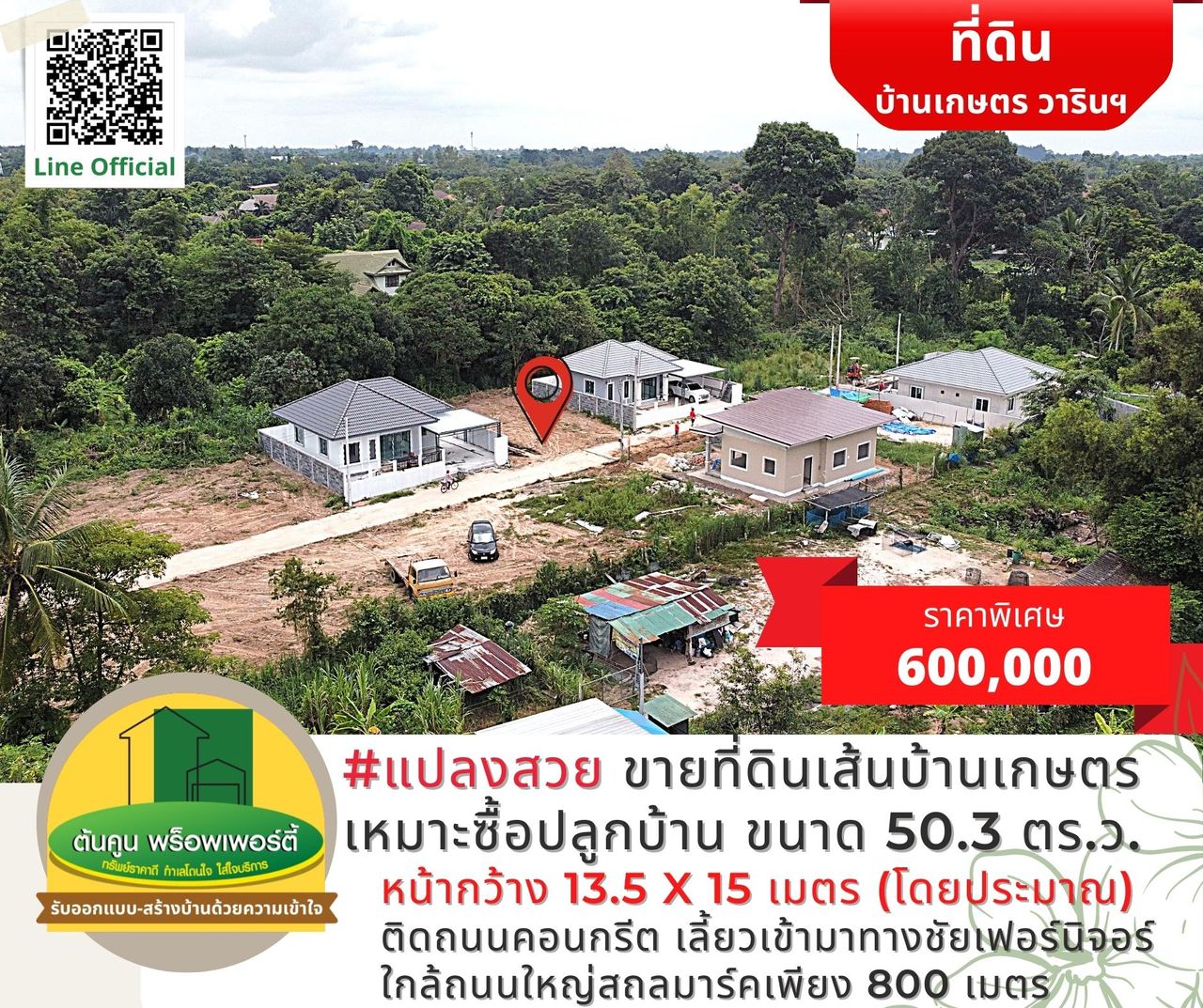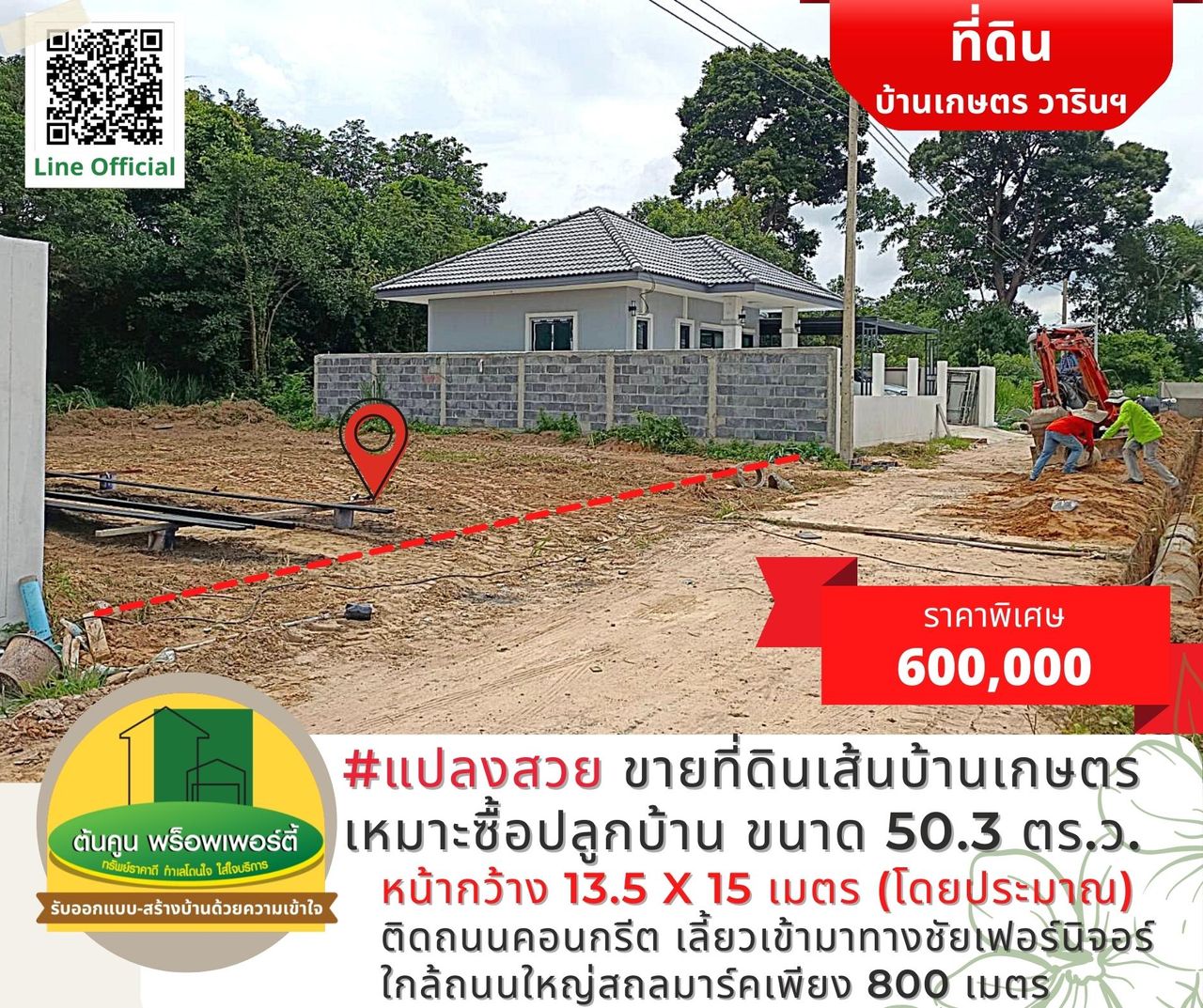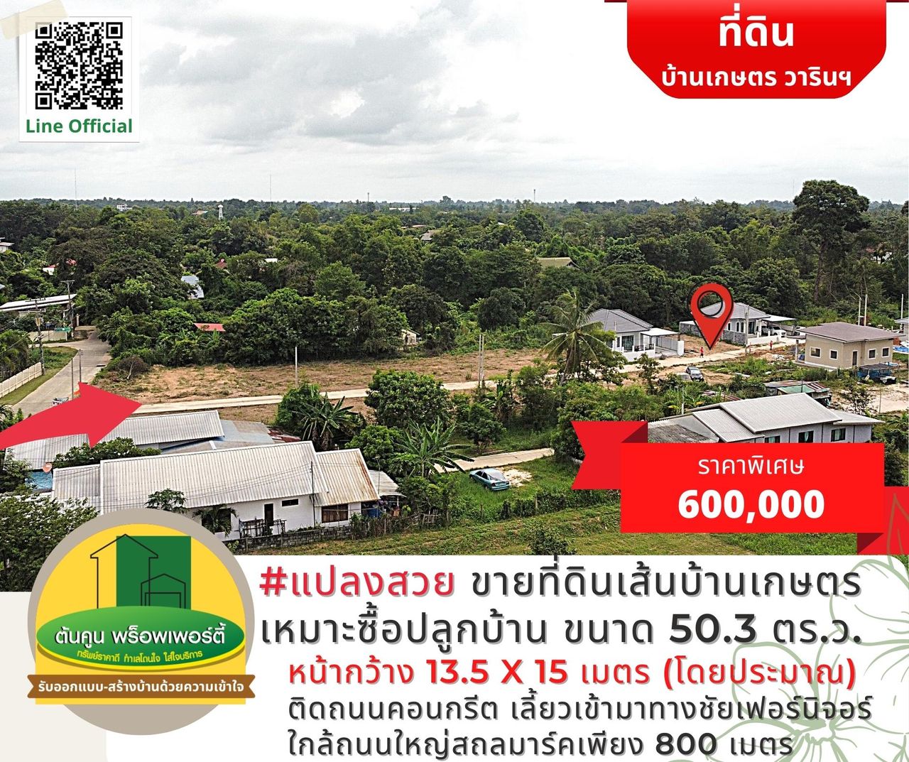 ราคาพิเศษเพียง 600,000 บาท (ค่าใช้จ่ายในการโอนกรรมสิทธิ์คนละครึ่ง)