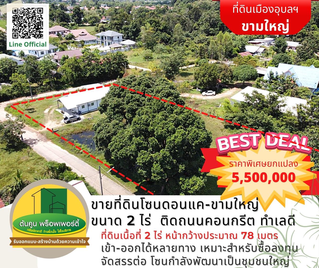 ขายยกแปลง 5,500,000 บาท (ค่าใช้จ่ายในการโอนกรรมสิทธิ์คนละครึ่ง)