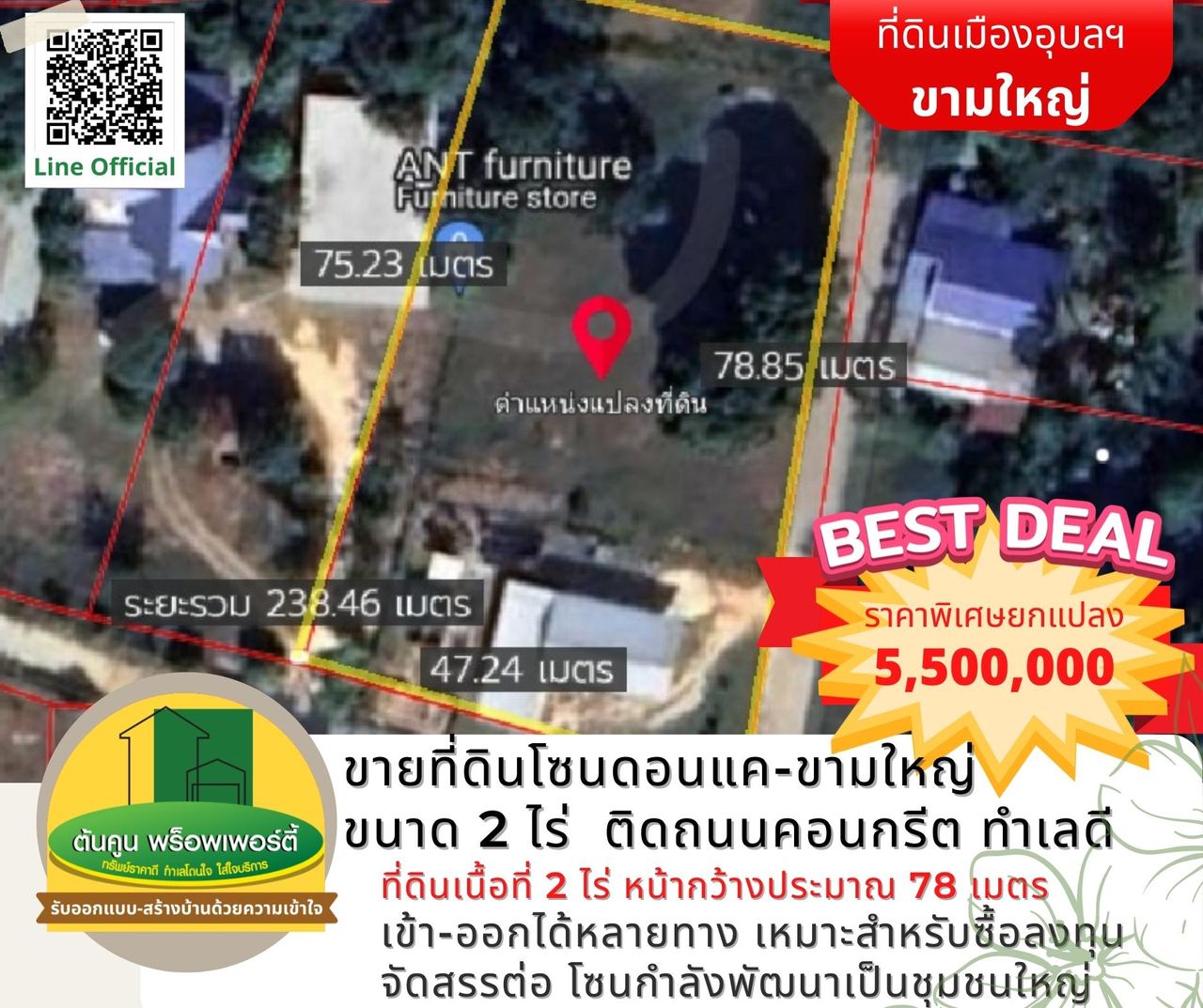 ✅ หน้าแปลงสวย หน้ากว้าง 78.8X40.6 เมตร (โดยประมาณ)