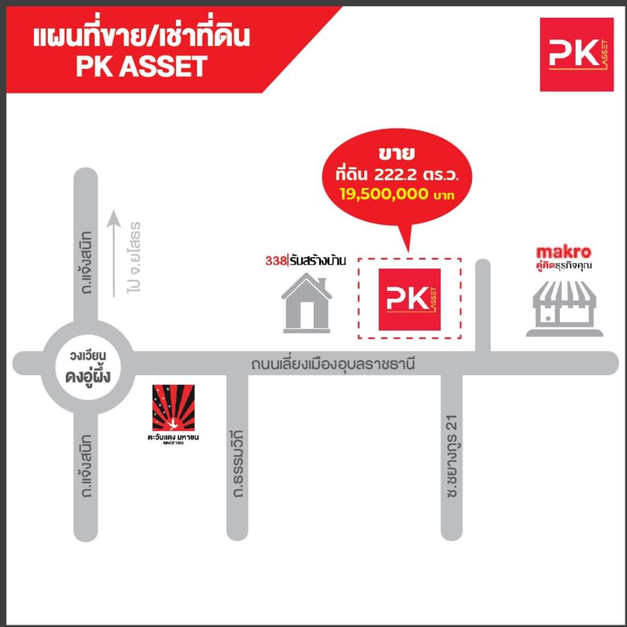 🔥ขายที่ดิน ใกล้อุบล338 ก่อนถึงแม็คโครอุบล
