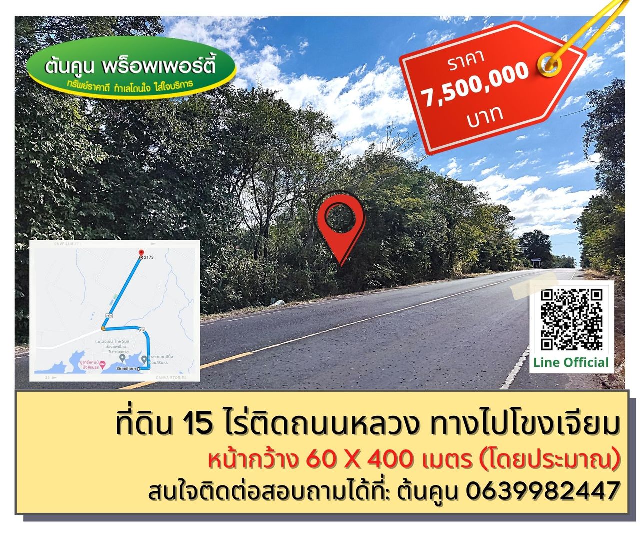 ขายที่ดิน 15 ไร่ติดถนนหลวง ทางไปโขงเจียม คำเขื่อนแก้ว อ.สิรินธร