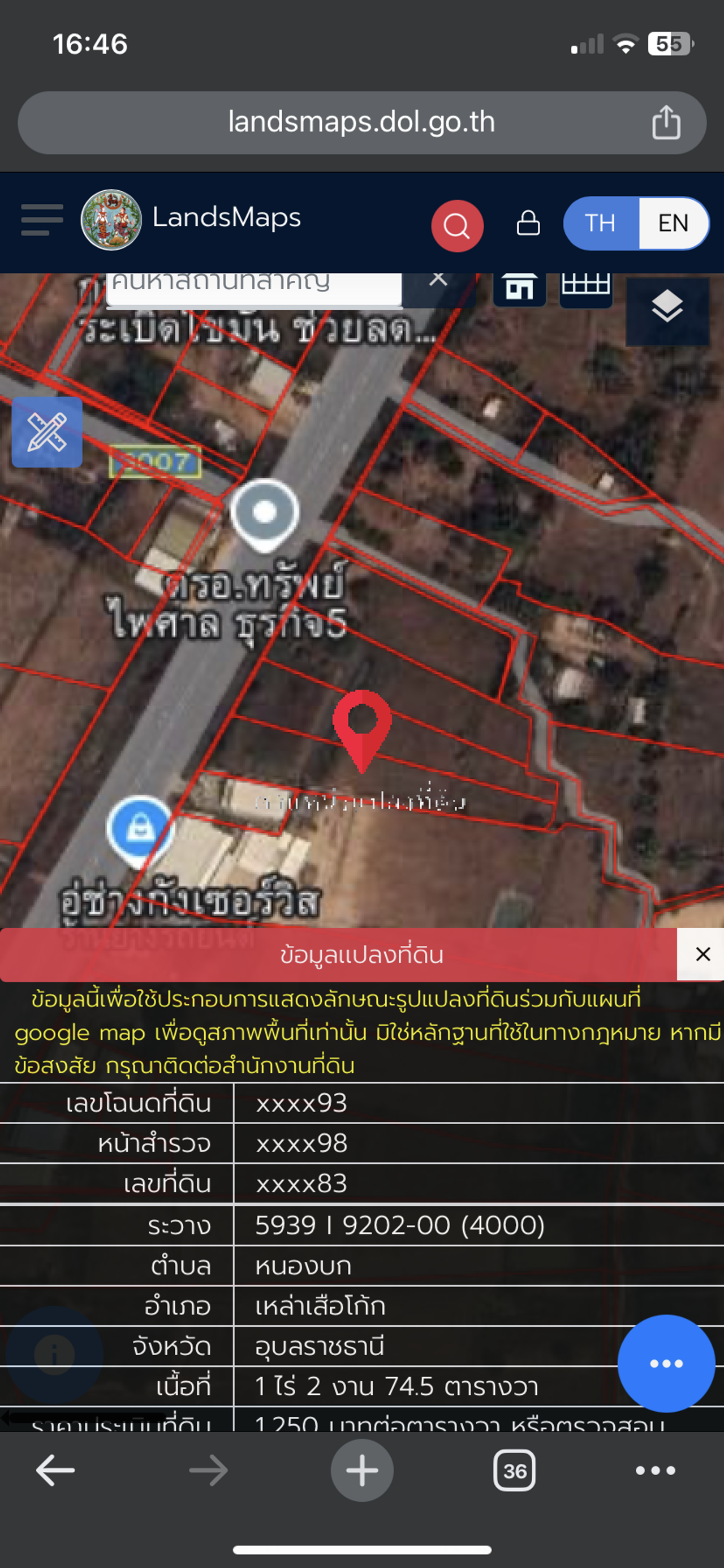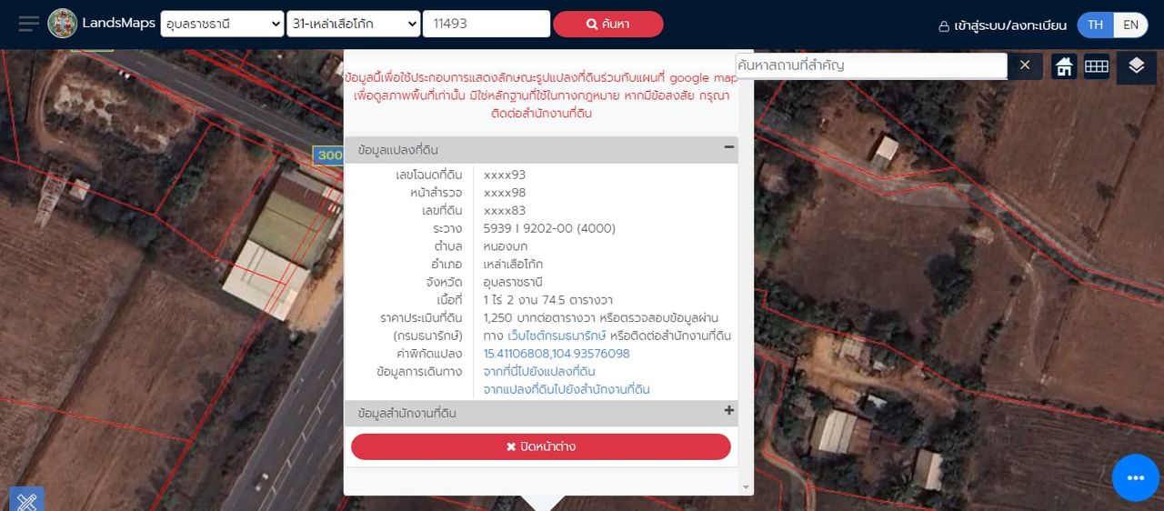 🔹 ที่ดิน 1 ไร่ 2 งาน 74.50 ตร.วา ทำเลทอง อ.เหล่าเสือโก้ก จ.อุบลฯ