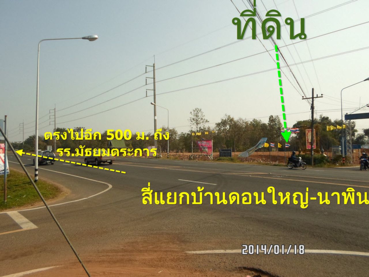 ที่โฉนด หน้ากว้างติดถนนทางหลวง 60 ม. ทางเข้า รร.อนุบาลน้องหญิง ฝั่งขาออกจากตระการพืชผล