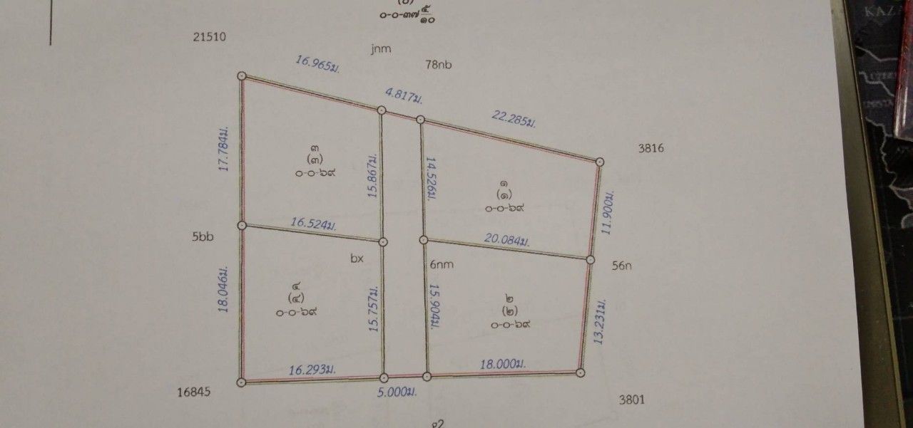 ด้านหน้าที่ดินติดถนนทางสาธารณะ ราคาแปลงละ250,000บาท