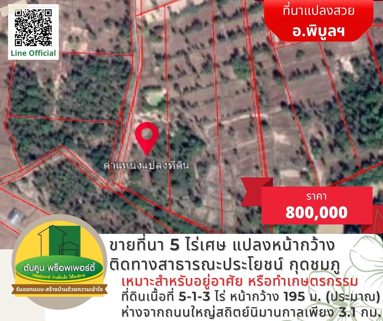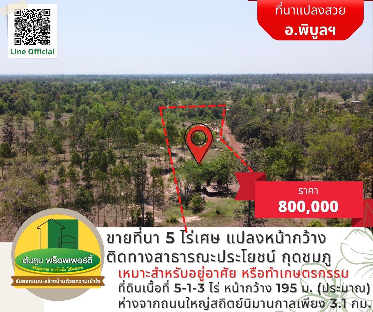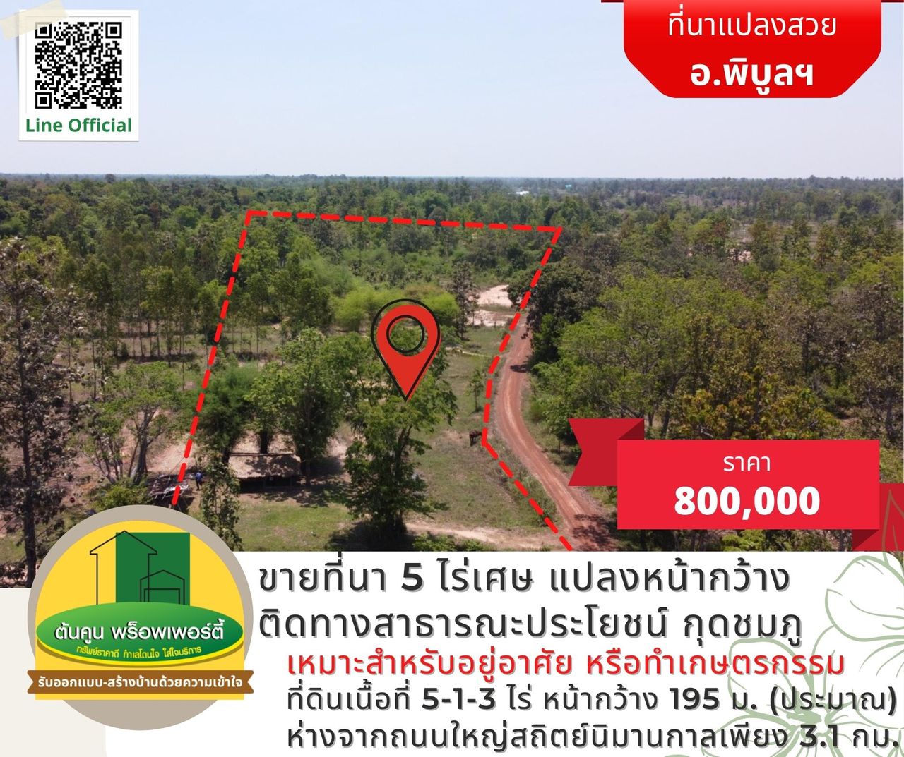 ขายที่นา 5 ไร่เศษ แปลงหน้ากว้าง ติดทางสาธารณะประโยชน์ กุดชมภู #พิบูลมังสาหาร