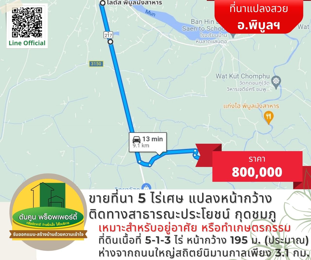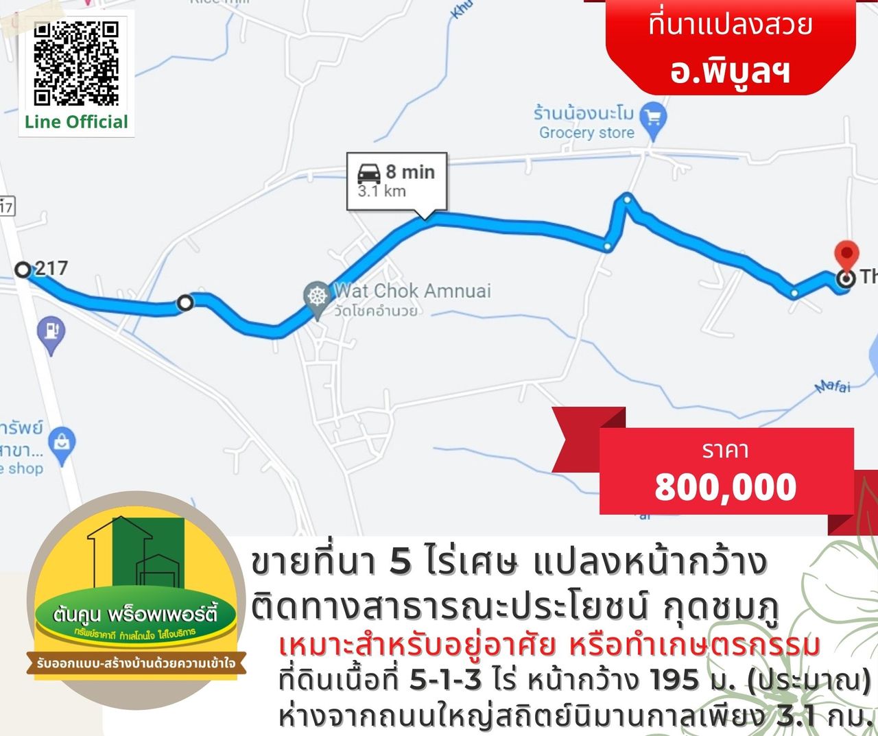 ขายเพียง 800,000 บาท (เฉลี่ยไร่ละ 157,000 บาท)