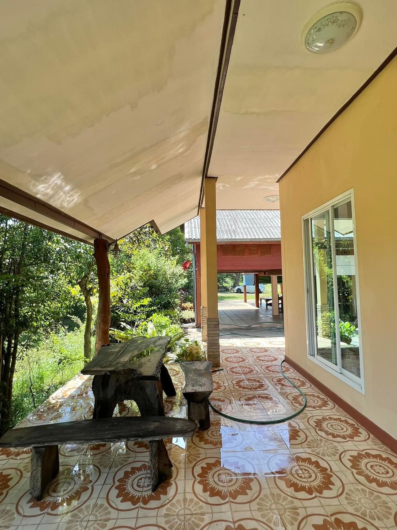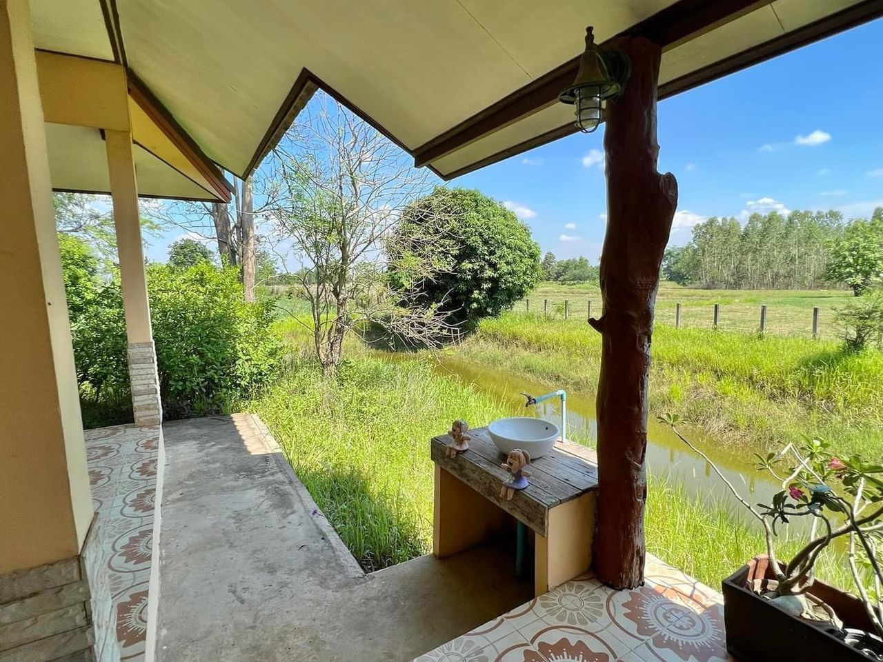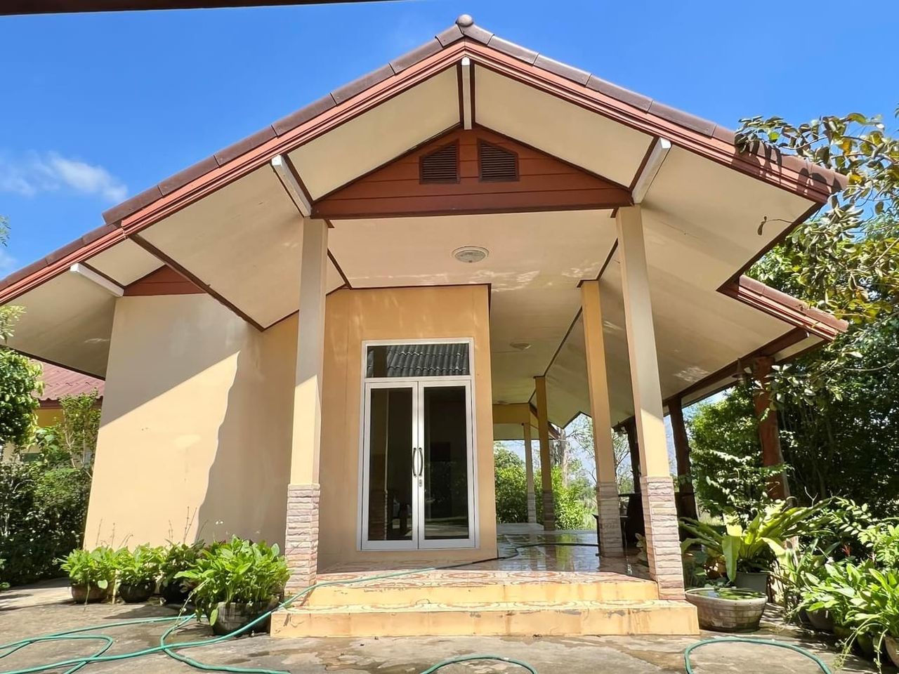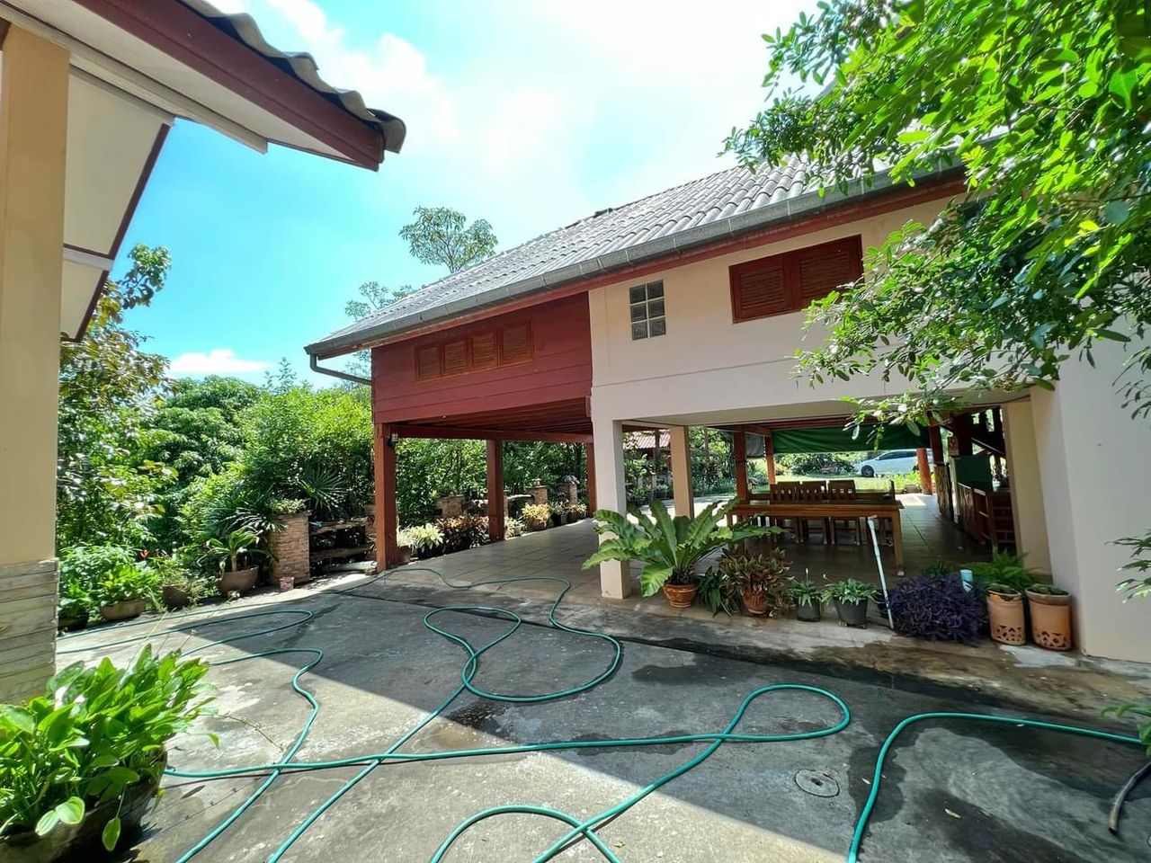 🌳 ร่มรื่นในสวนประกอบด้วยต้นไม้หลายชนิด ด้านหลังสามารถทำไร่/ปลูกข้าวได้ มีสระน้ำ