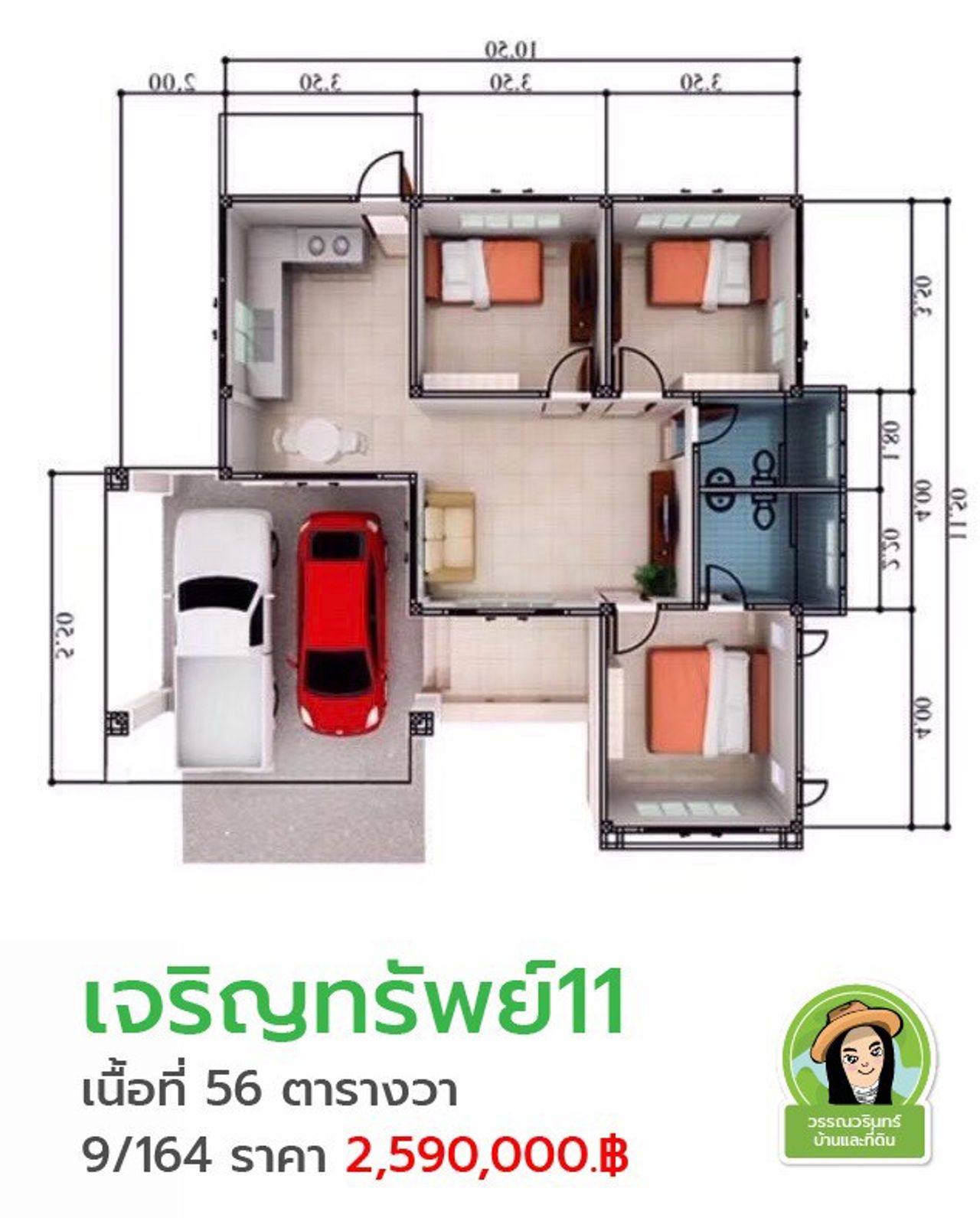 บ้านเดี่ยวชั้นเดียว 56 ตรว.