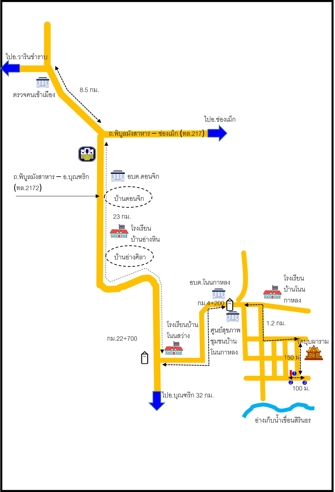 ที่ตั้ง : ห่างจากถนนพิบูลมังสาหาร - อ.บุณฑริก ประมาณ 5 กม.