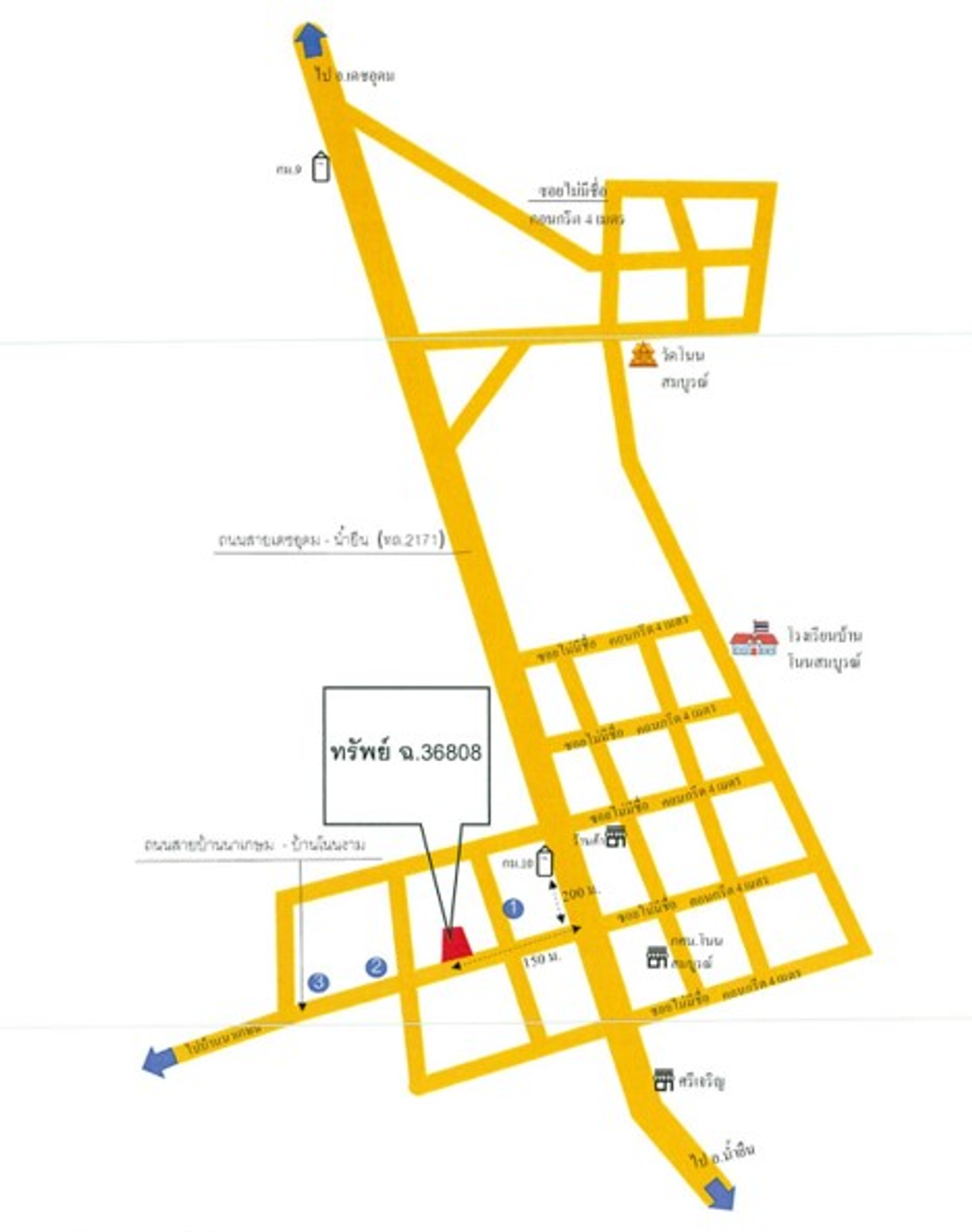 ที่ตั้ง : ห่างจากถนนเดชอุดม - น้ำยืน (ทล.2171) ประมาณ 150 ม. ถึงทรัพย์