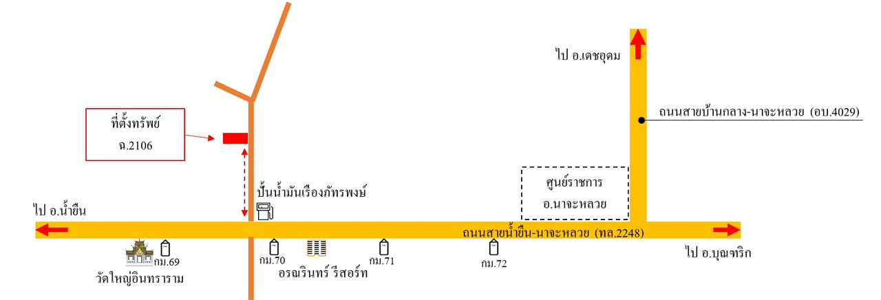 ที่ตั้ง : เลขที่ 138 หมู่ 138 หมู่ 17 ติดถนนเวียงชัย แยกน้ำยืน-นาจะหลวย (ทล.2248) ต.นาจะหลวย อ.นาจะหลวย จ.อุบลราชธานี