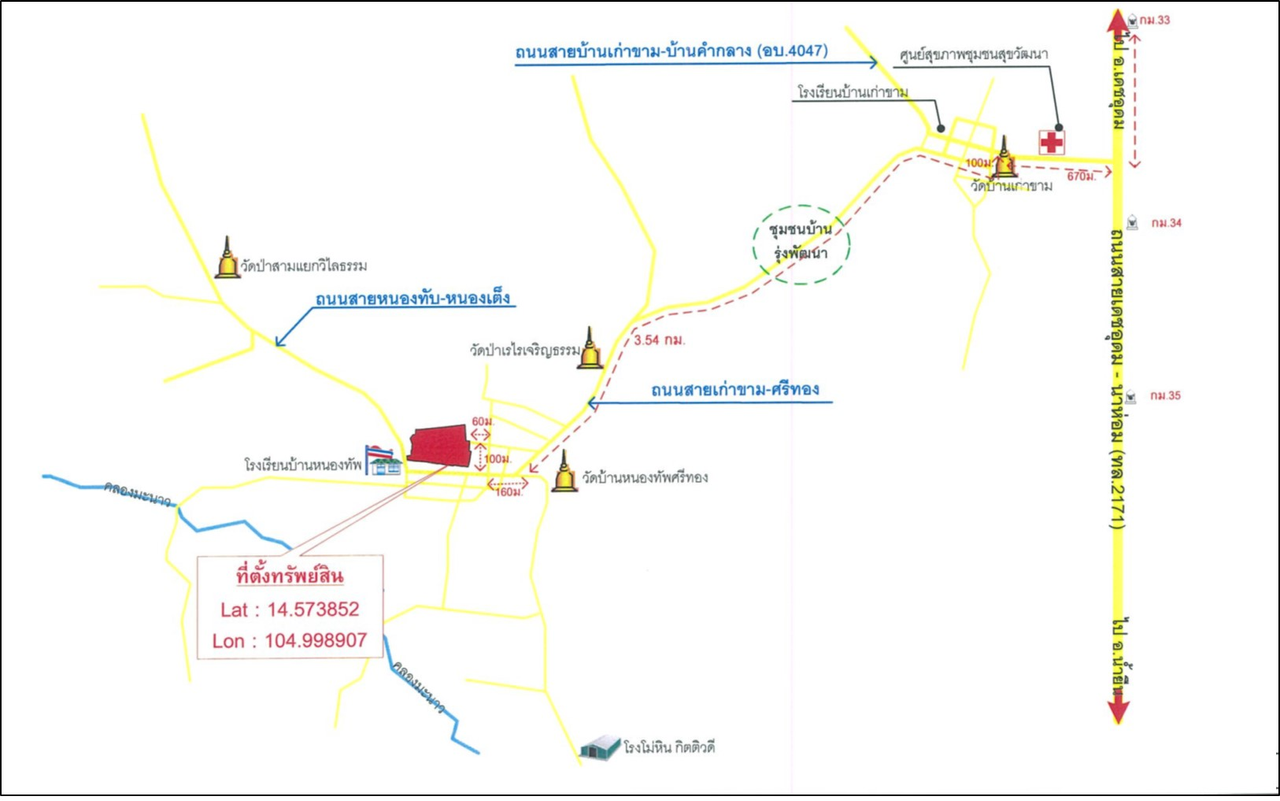 ที่ตั้ง : ทรัพย์ตั้งอยู่ในหมู่บ้านหนองทัพ ห่างจากถนน (ทล.2171) ประมาณ 6 กม.