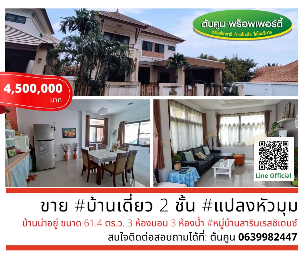 ราคาเพียง 4,500,000 บาท (ค่าใช้จ่ายวันโอนกรรมสิทธิ์คนละครึ่ง)