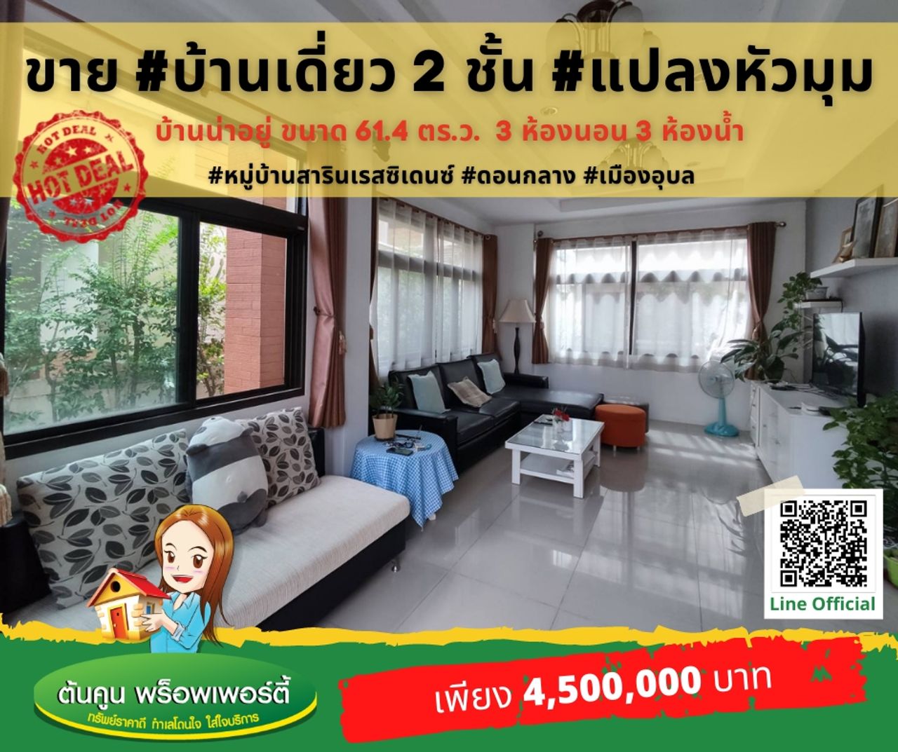 ขายบ้านเดี่ยว 2 ชั้น แปลงหัวมุม เฟอร์ครบ พร้อมอยู่ #หมู่บ้านสารินเรสซิเดนซ์ #ดอนกลาง #เมืองอุบล