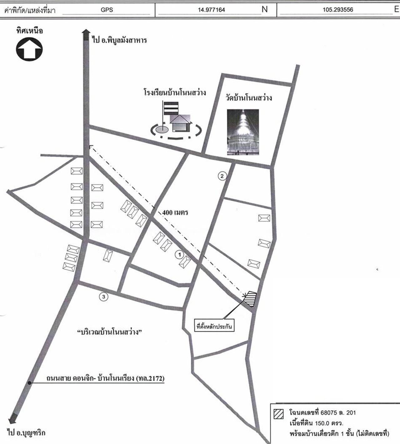 - ต.อ่างศิลา อ.พิบูลมังสาหาร จ.อุบลราชธานี 150 ตร.ว. 1 ชั้น