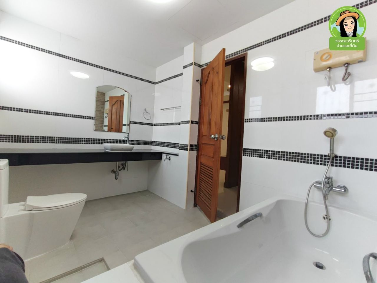 - 5ห้องน้ำ ชั้นบน2ห้อง(มีอ่างอาบน้ำ) และในชั้นล่าง3ห้อง(ห้องน้ำในห้องนอน2ห้องและโถงรับแขกอีก1ห้อง)