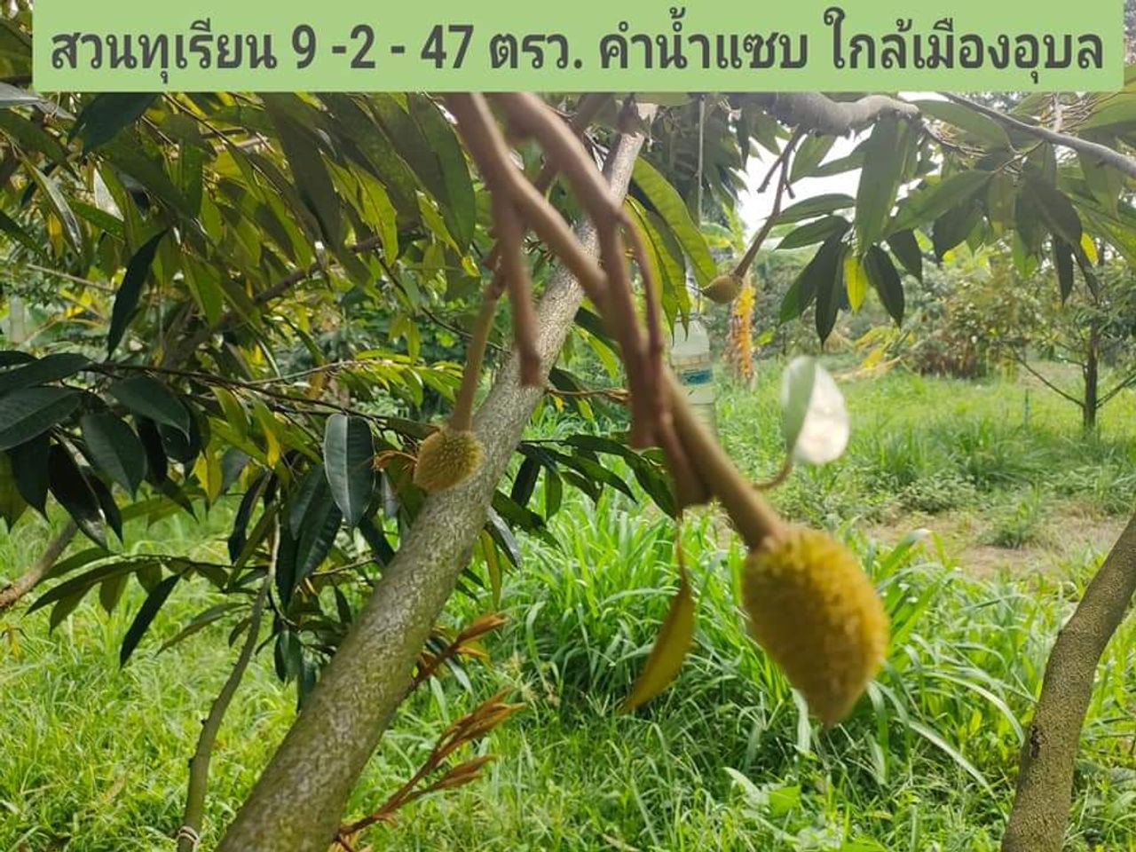 ขายสวนทุเรียน ใกล้เมือง คำน้ำแซบ 9 ไร่ 2 งาน 47 ตรว. ขายไร่ละ 1,600,000