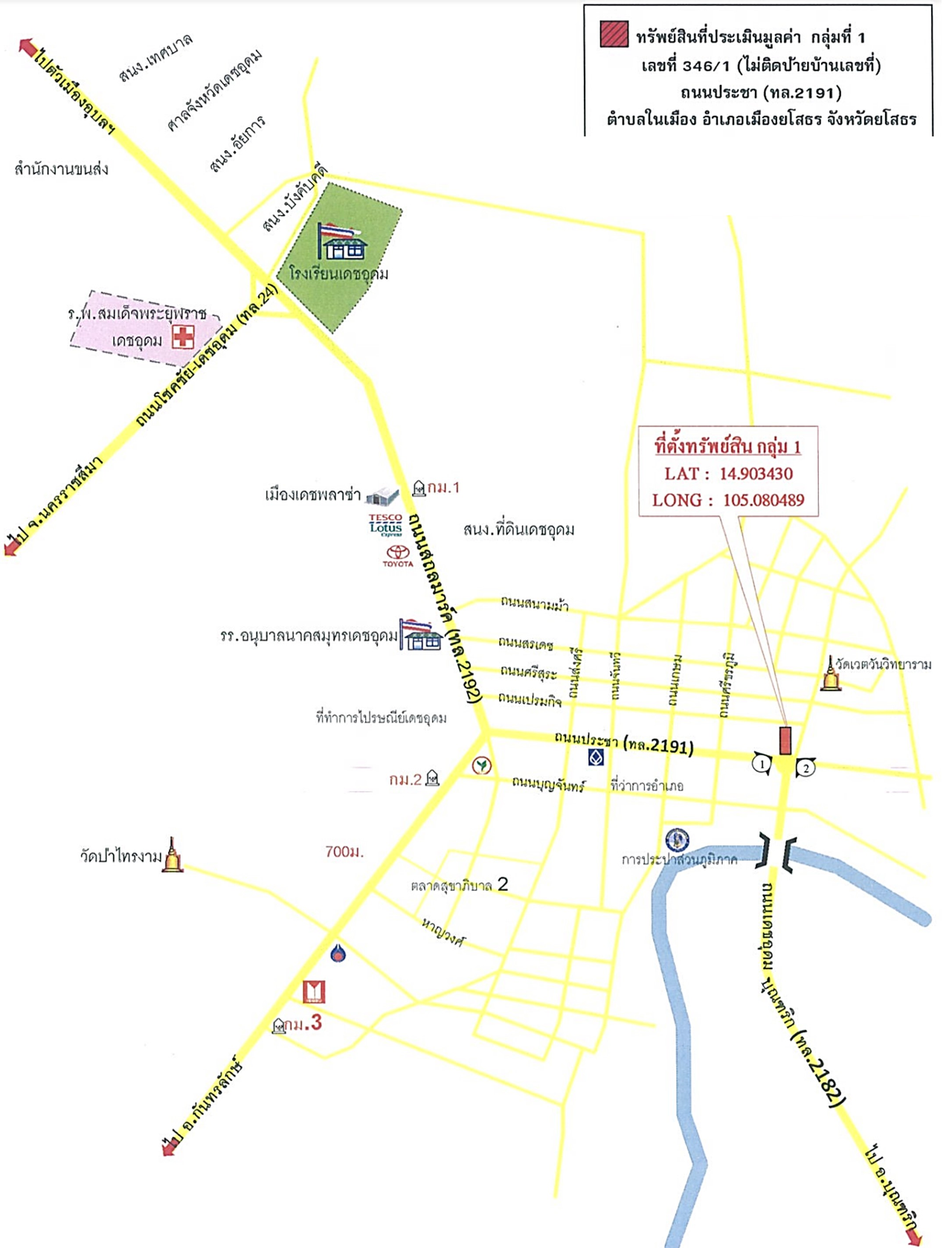 ที่ตั้ง : ทรัพย์ติดถนนหน้าหอนาฬิกาเดชอุดม