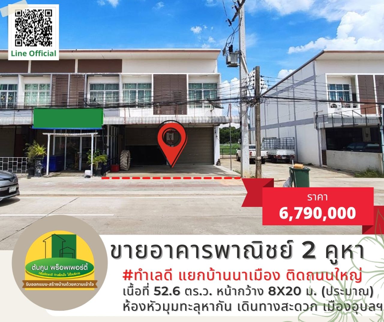 ขายอาคารพาณิชย์ 2 คูหา #ทำเลดี ใกล้แยกบ้านนาเมือง ติดถนนหลักเส้นอุบล-ตระการ จังหวัดอุบลราชธานี