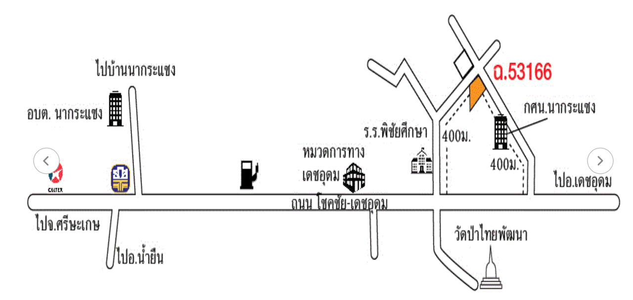 ที่ตั้ง : บ้านเลขที่ 299 หมู่ที่ 3 หมู่บ้าน/โครงการ นากระแซง ตำบล นากระแซง อำเภอ เดชอุดม จังหวัด อุบลราชธานี