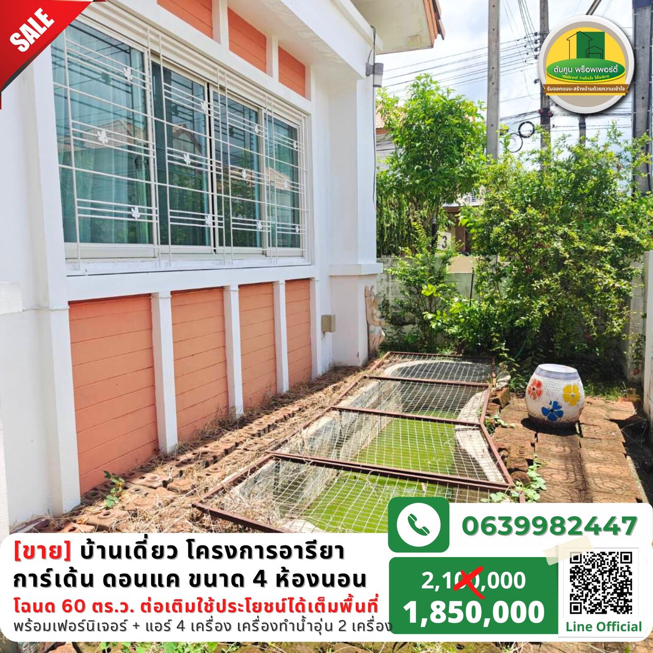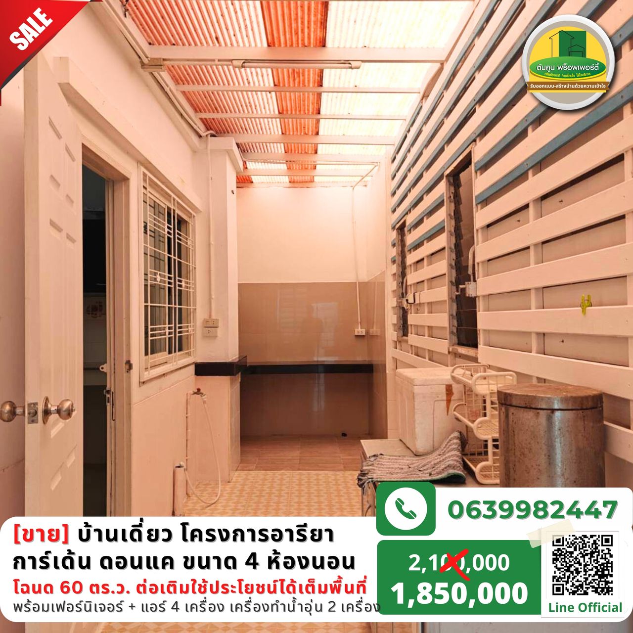 [vาย] บ้านเดี่ยวราคาสุดคุ้มไม่ถึง 2 ล้าน โครงการหมู่บ้านอารียาการ์เด้น เส้นดอนแค ขนาด 4 ห้องนอน