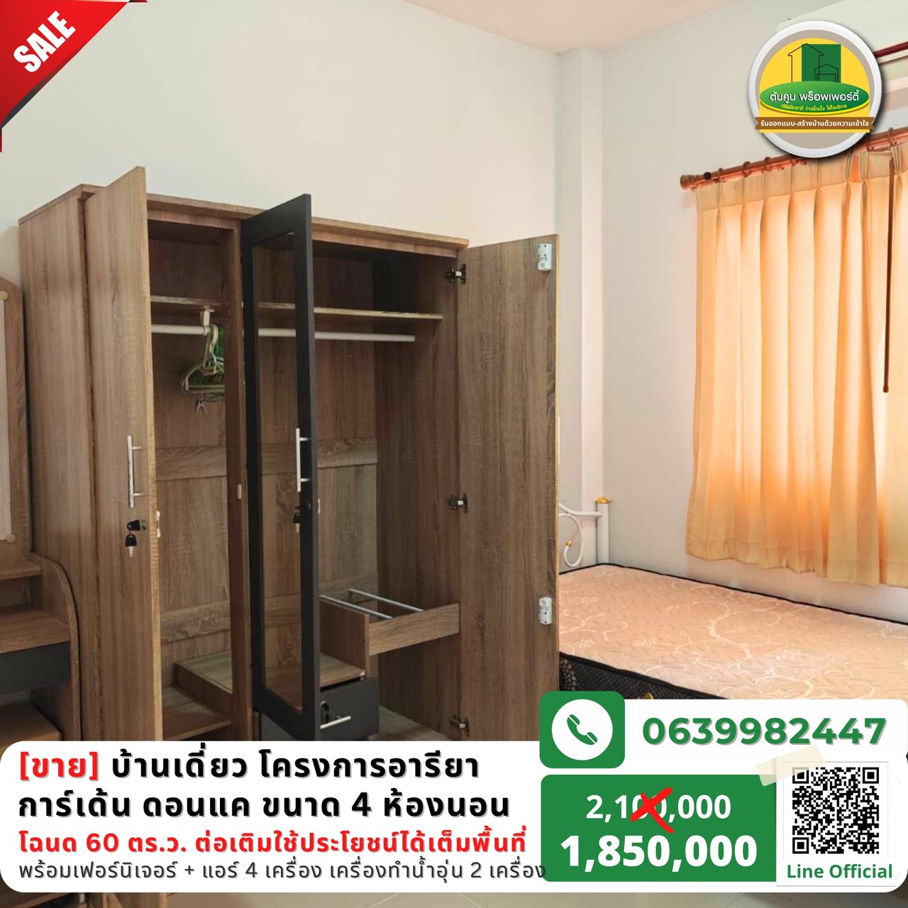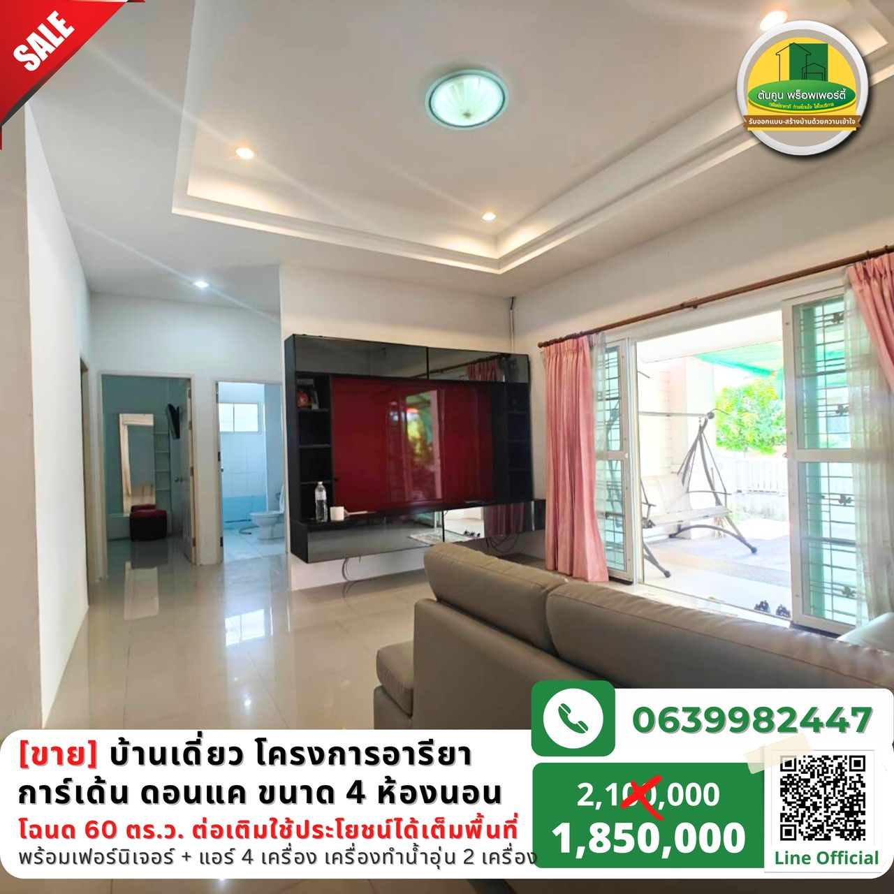 พิเศษเพียง 1,850,000 บาท (ค่าใช้จ่ายที่สนง.ที่ดินคนละครึ่ง)