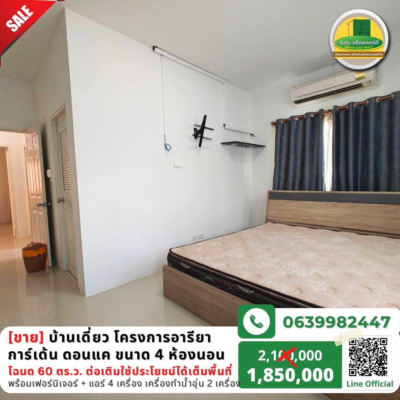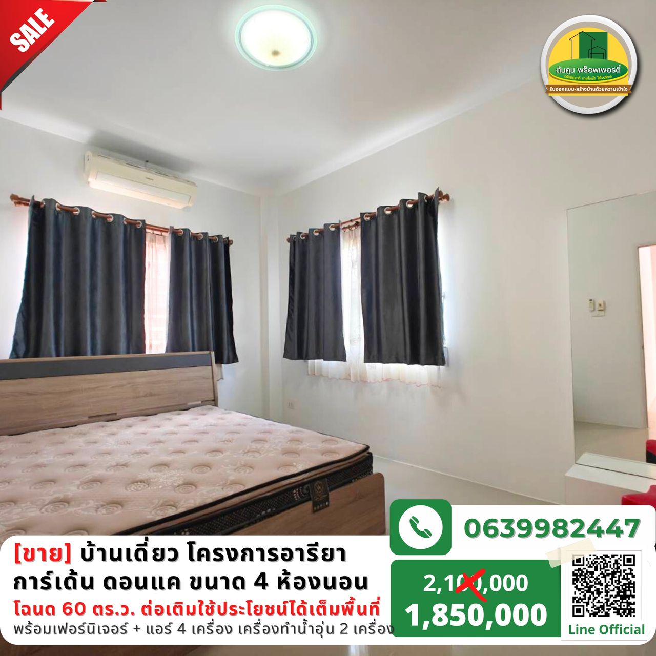 ✅ พร้อมเฟอร์นิเจอร์ + แอร์ 4 เครื่อง เครื่องทำน้ำอุ่น 2 เครื่อง และอื่นๆ