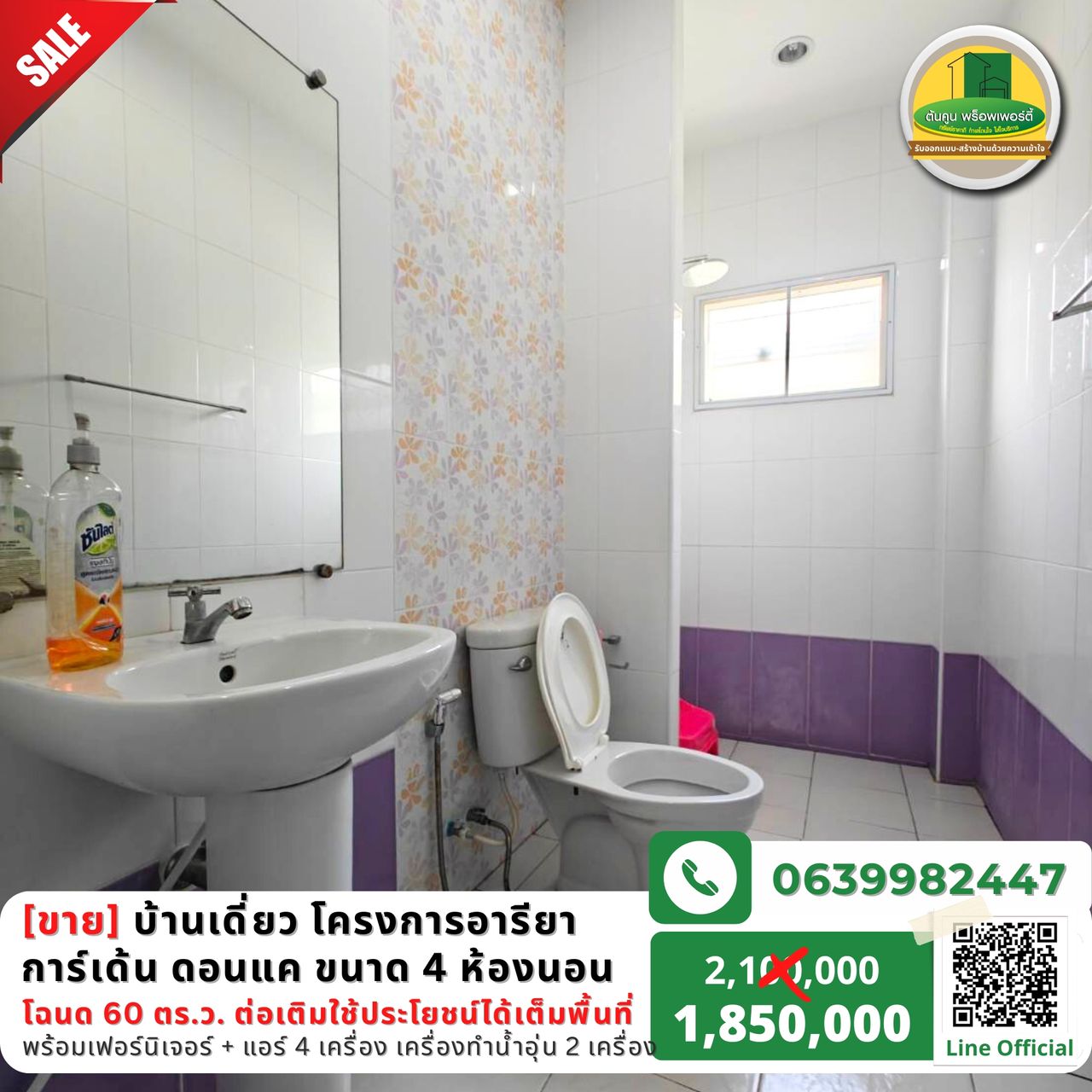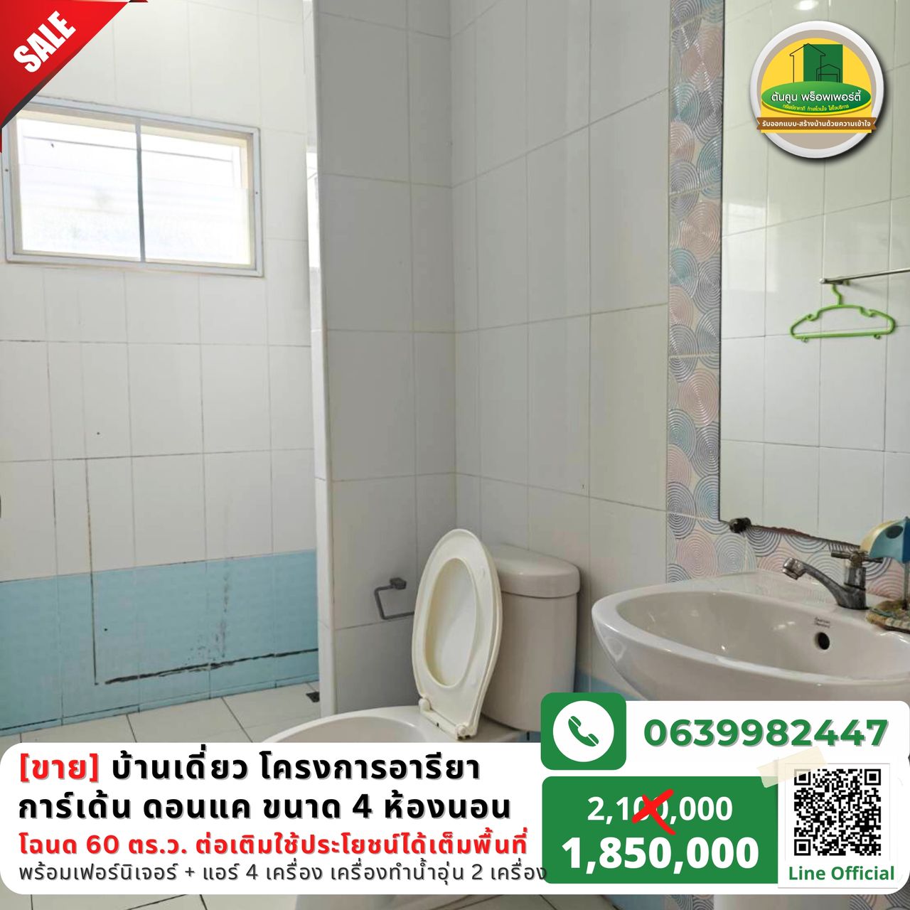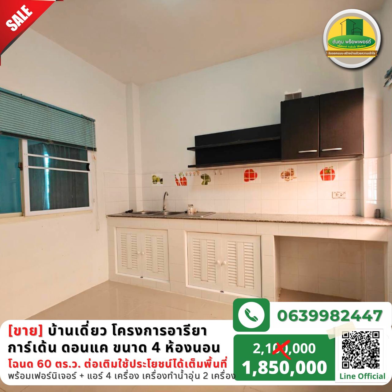 ✅ ขนาด 4 ห้องนอน 2 ห้องน้ำ 2 ห้องครัวทั้งใน/นอก