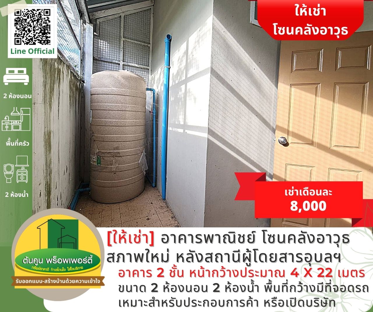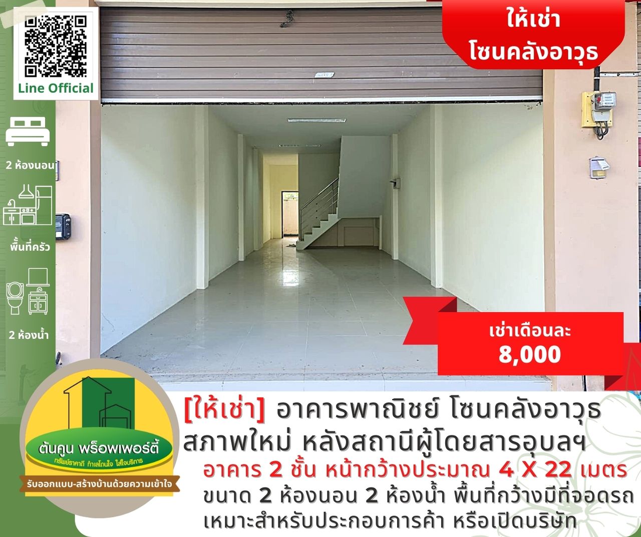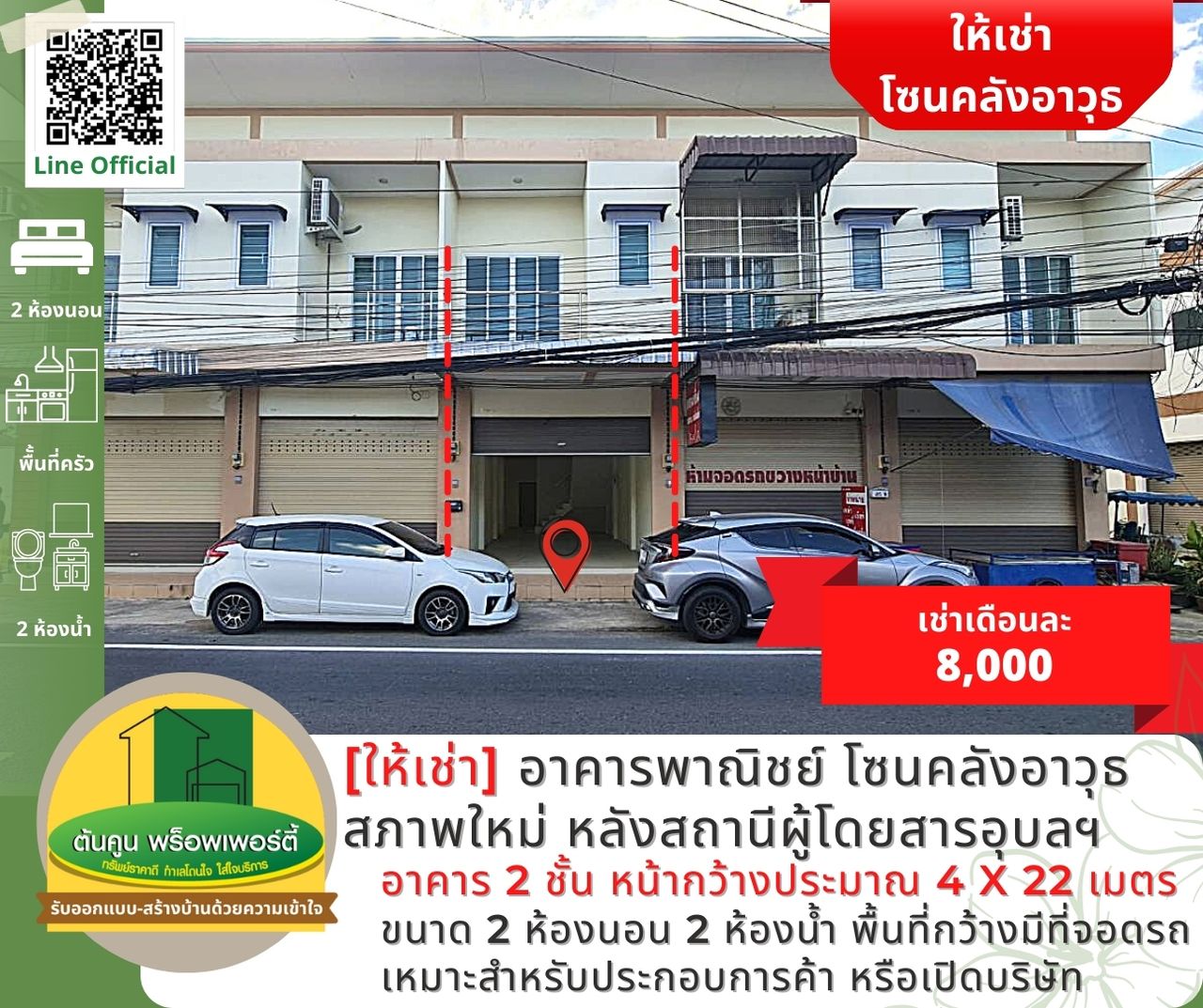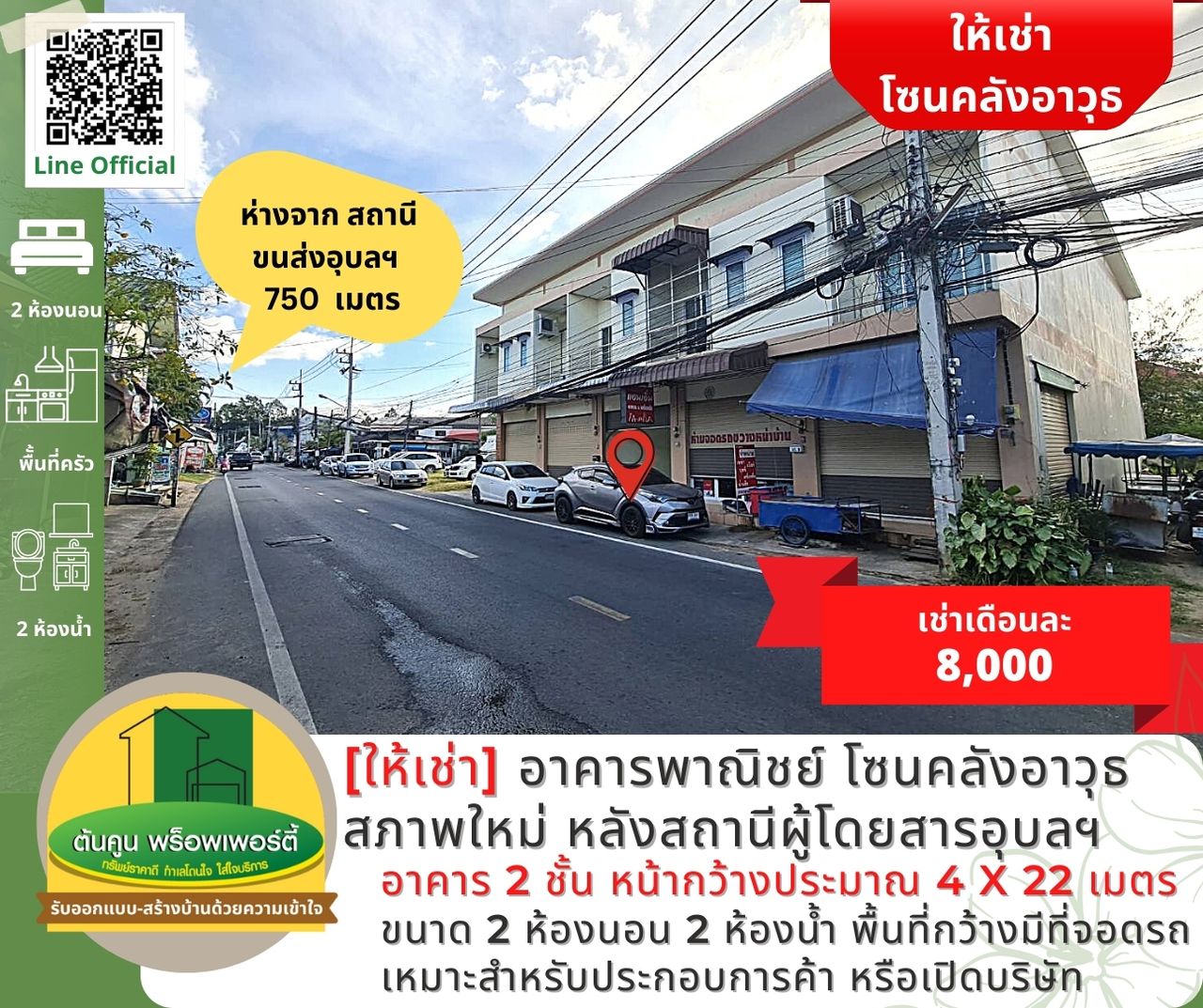 [ให้เช่า] อาคารพาณิชย์ 2 ชั้น โซนคลังอาวุธ สภาพใหม่ ติดถนนเส้นสถานีผู้โดยสารอุบลฯ