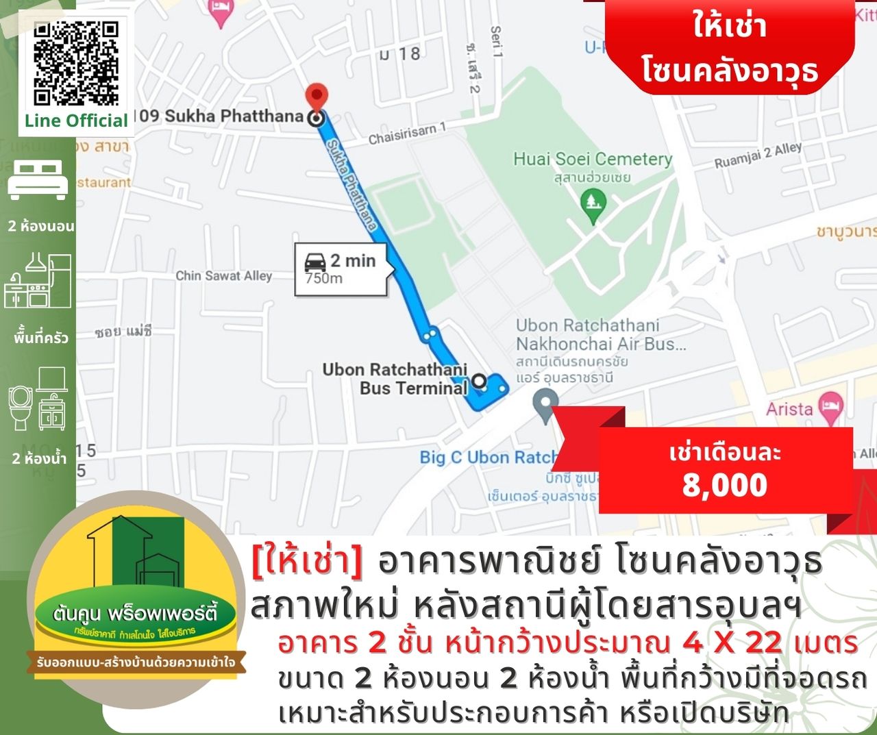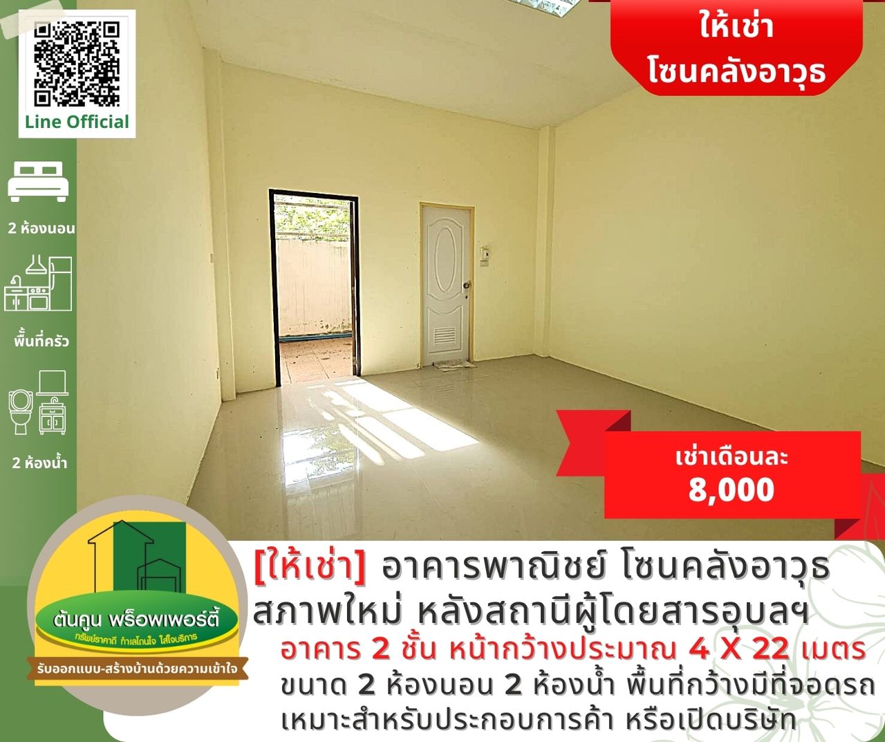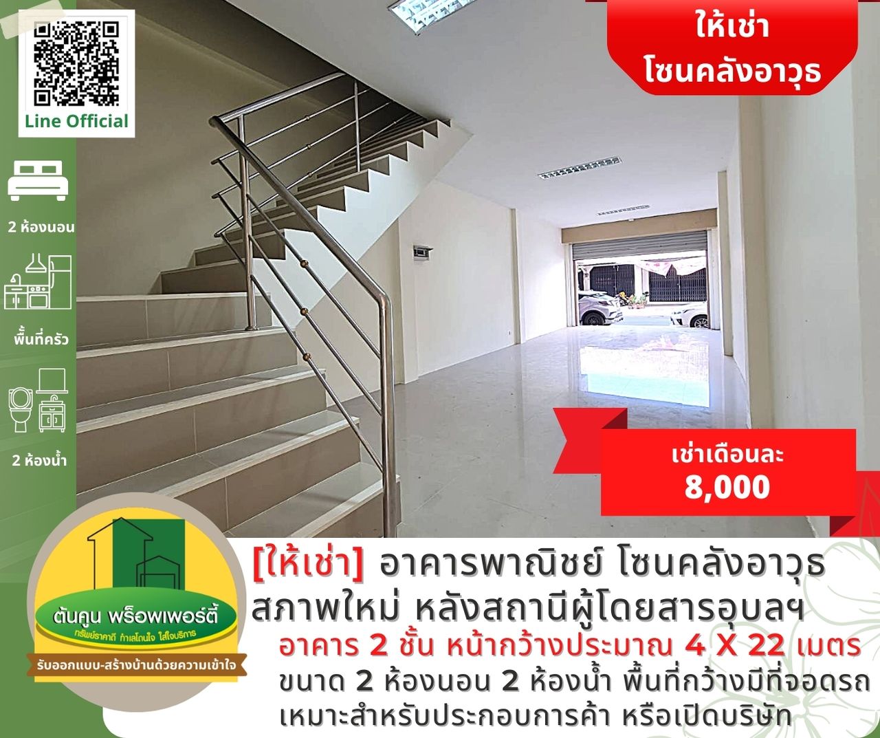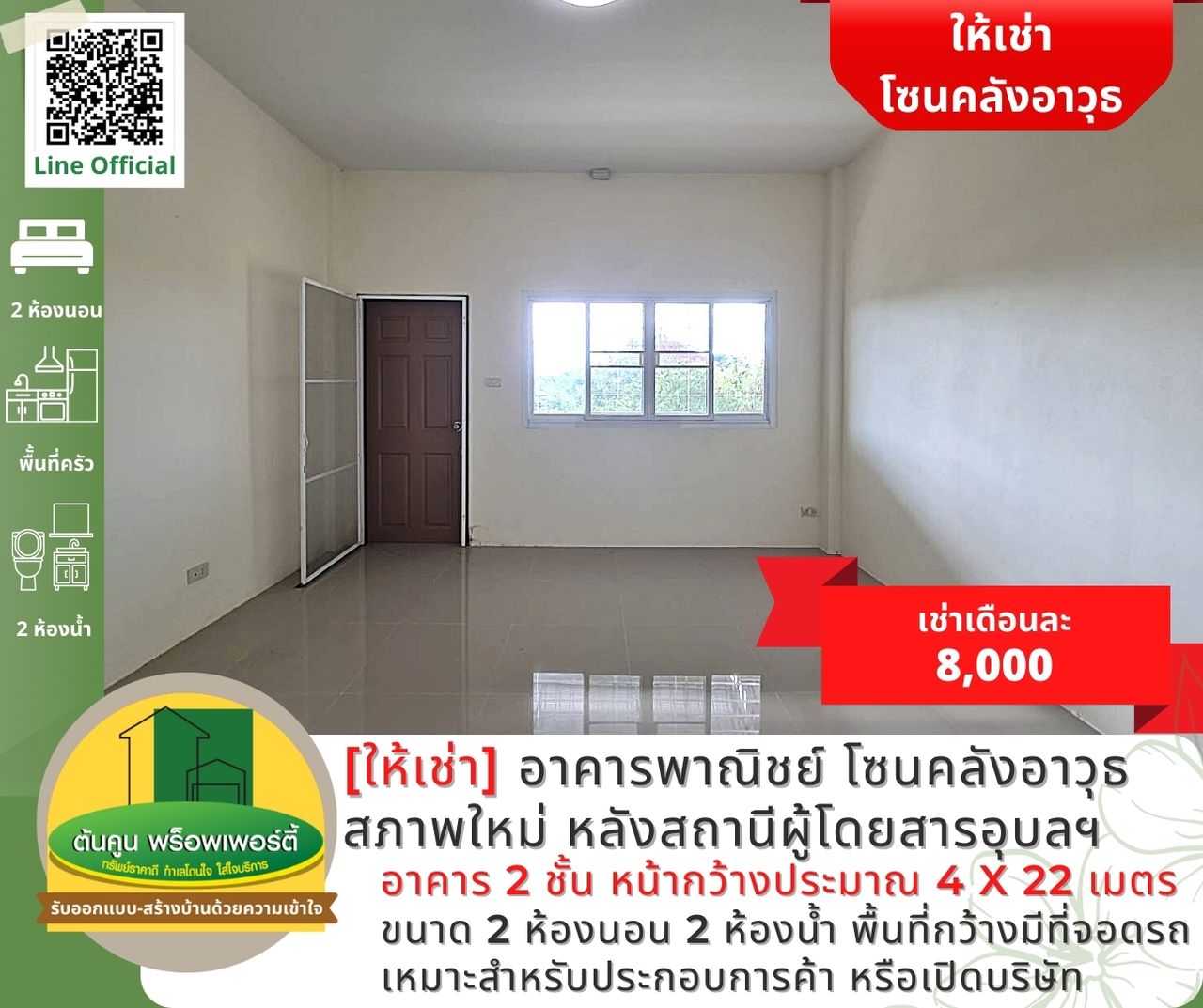 [ให้เช่า] อาคารพาณิชย์ 2 ชั้น โซนคลังอาวุธ สภาพใหม่ ติดถนนเส้นสถานีผู้โดยสารอุบลฯ