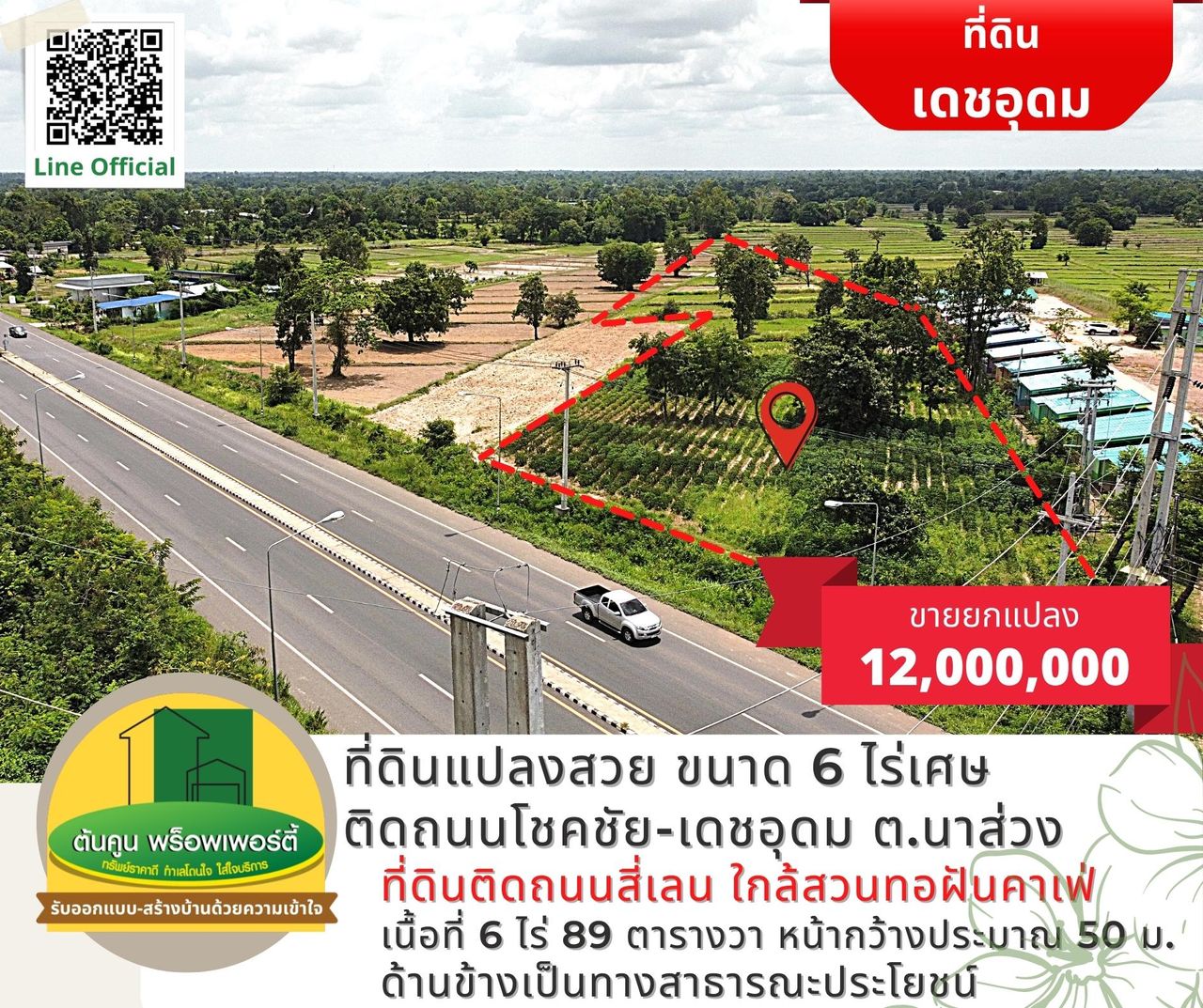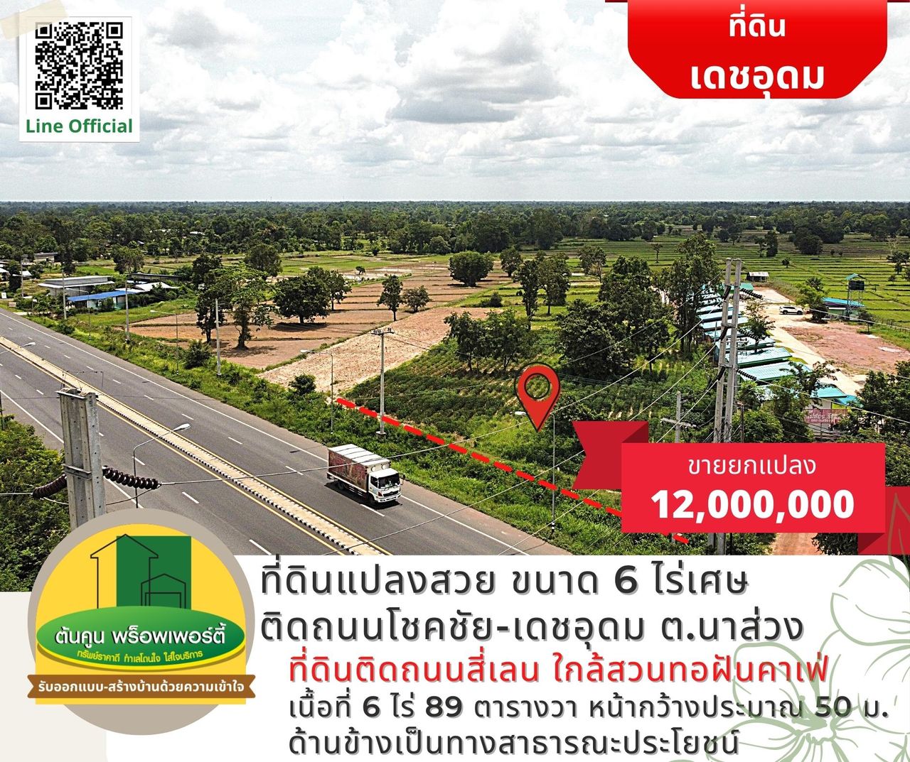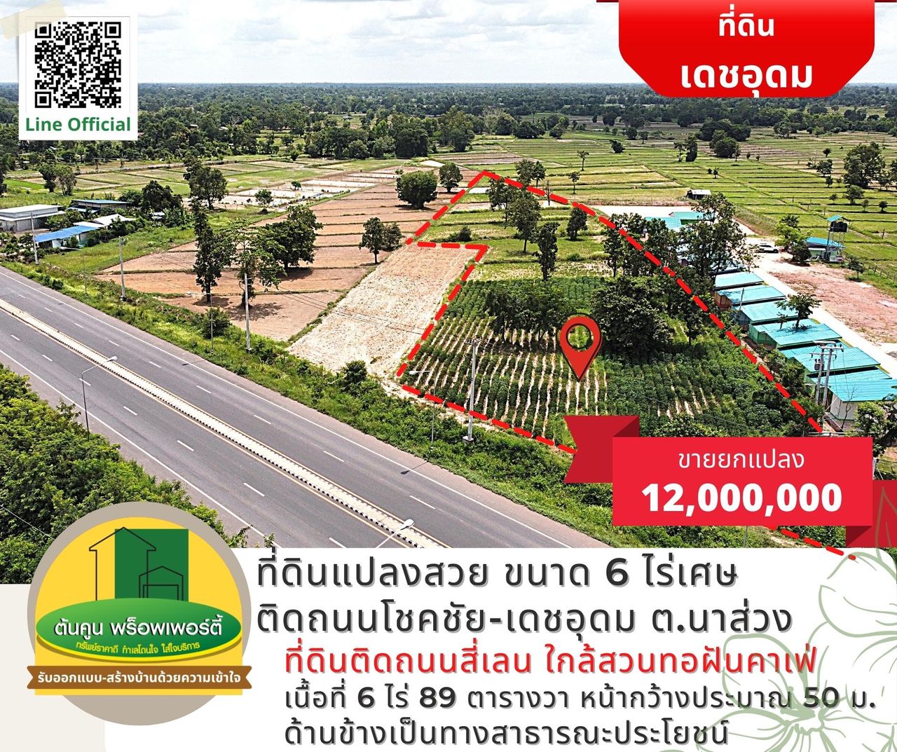 ที่ดินแปลงสวย ขนาด 6 ไร่เศษ ติดถนนโชคชัย-เดชอุดม ต.นาส่วง อ.เดชอุดม จ อุบลราชธานี