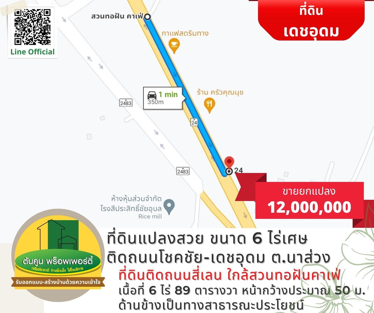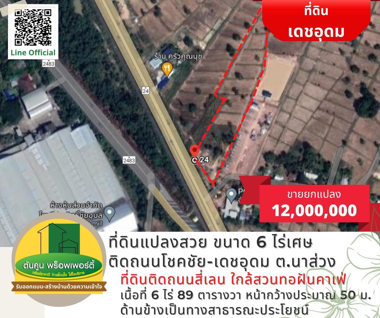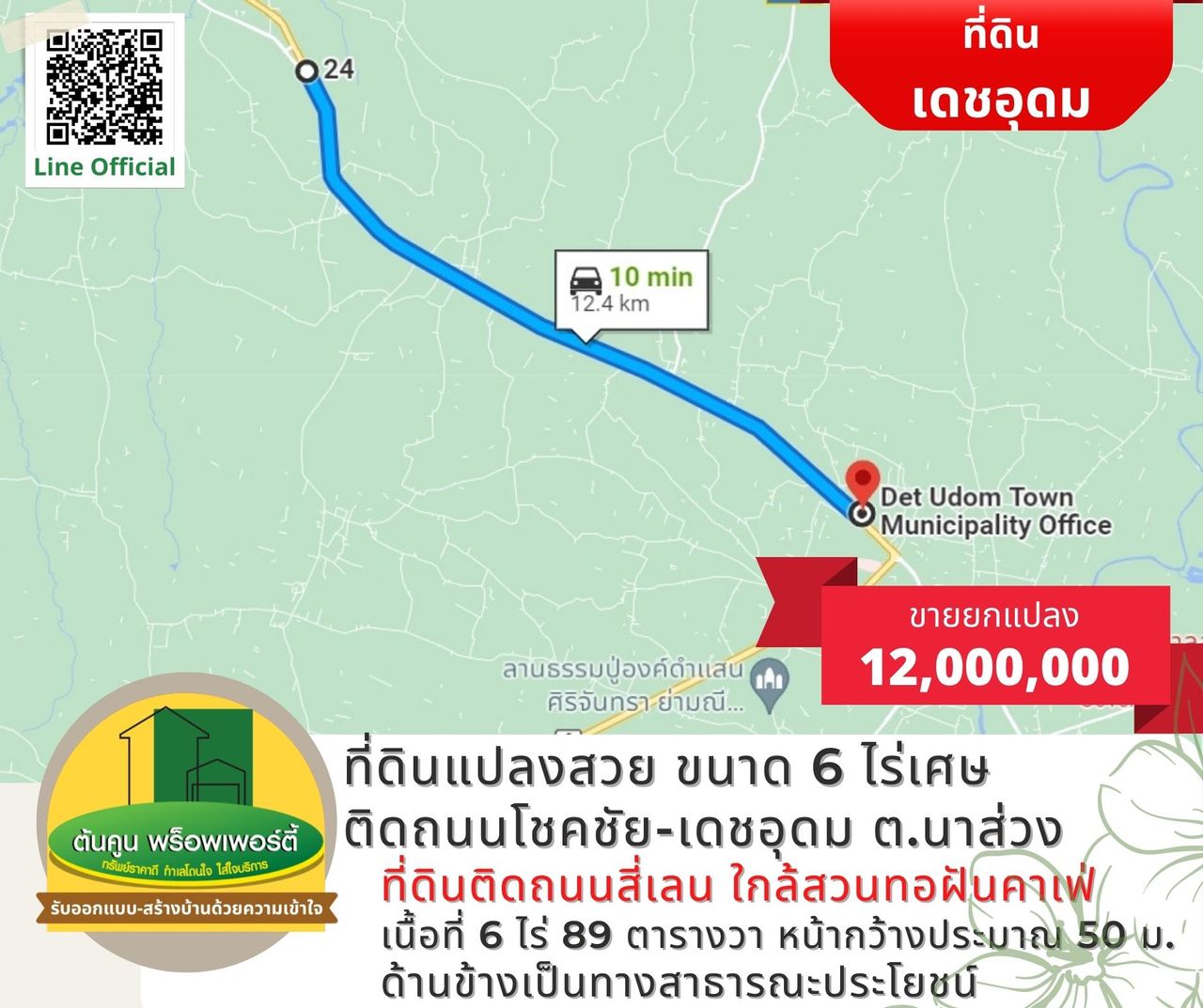 ที่ดินแปลงสวย ขนาด 6 ไร่เศษ ติดถนนโชคชัย-เดชอุดม ต.นาส่วง อ.เดชอุดม จ อุบลราชธานี