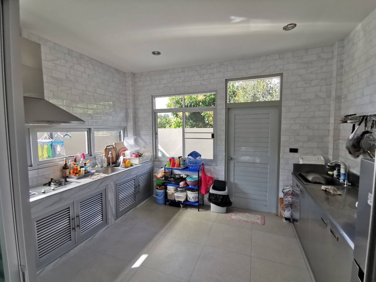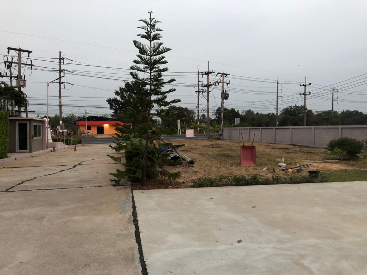 ในที่ดินมีอาคารอเนกประสงค์ สำหรับทำการค้าหรือเป็นออฟฟิส พร้อมลานจอดรถ และยังมีที่ดินว่างเปล่าติดถนนใหญ่