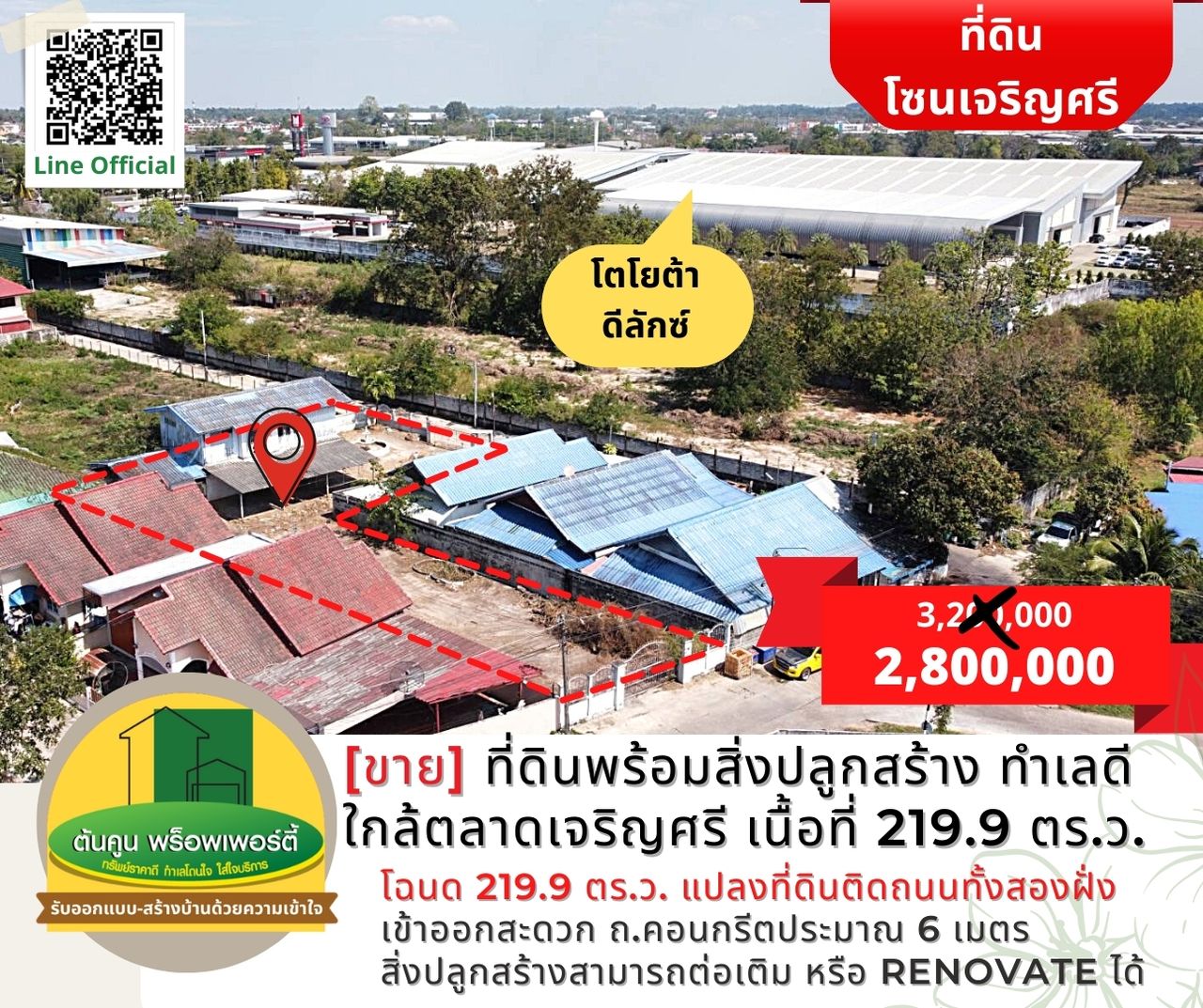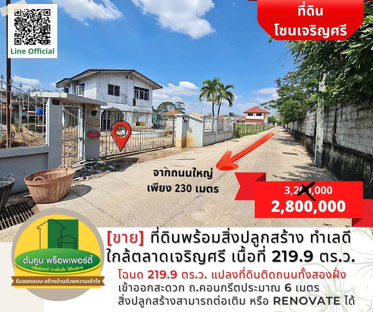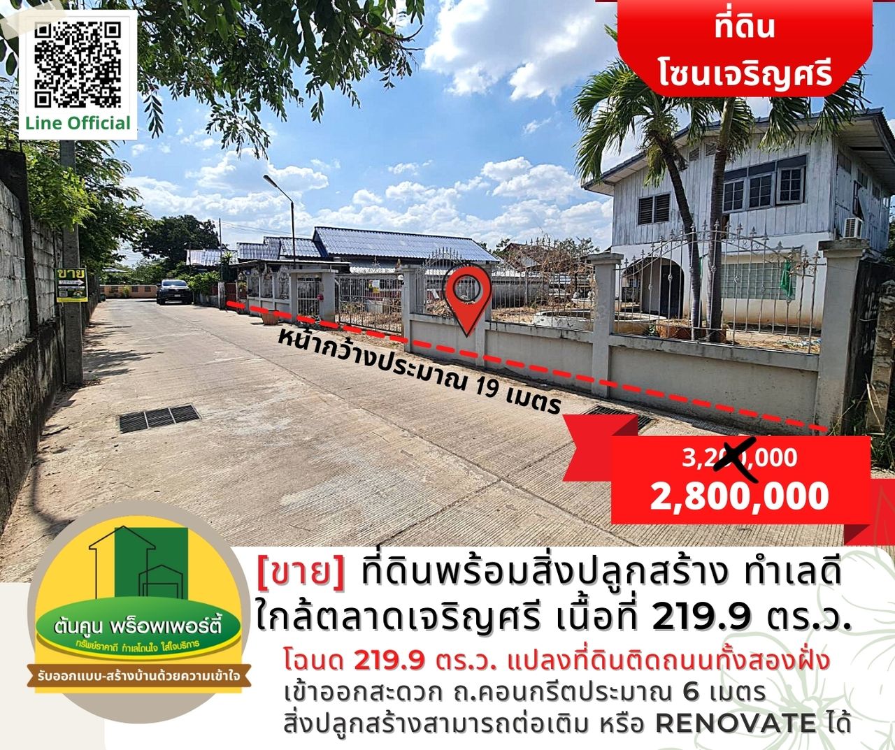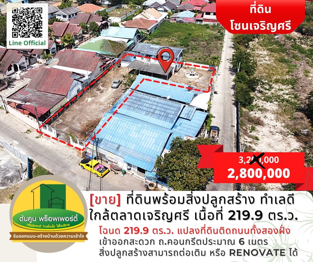 ราคาพิเศษ! ขายที่ดินพร้อมสิ่งปลูกสร้าง ทำเลดี ใกล้ตลาดเจริญศรี เนื้อที่ 219.9 ตร.ว.