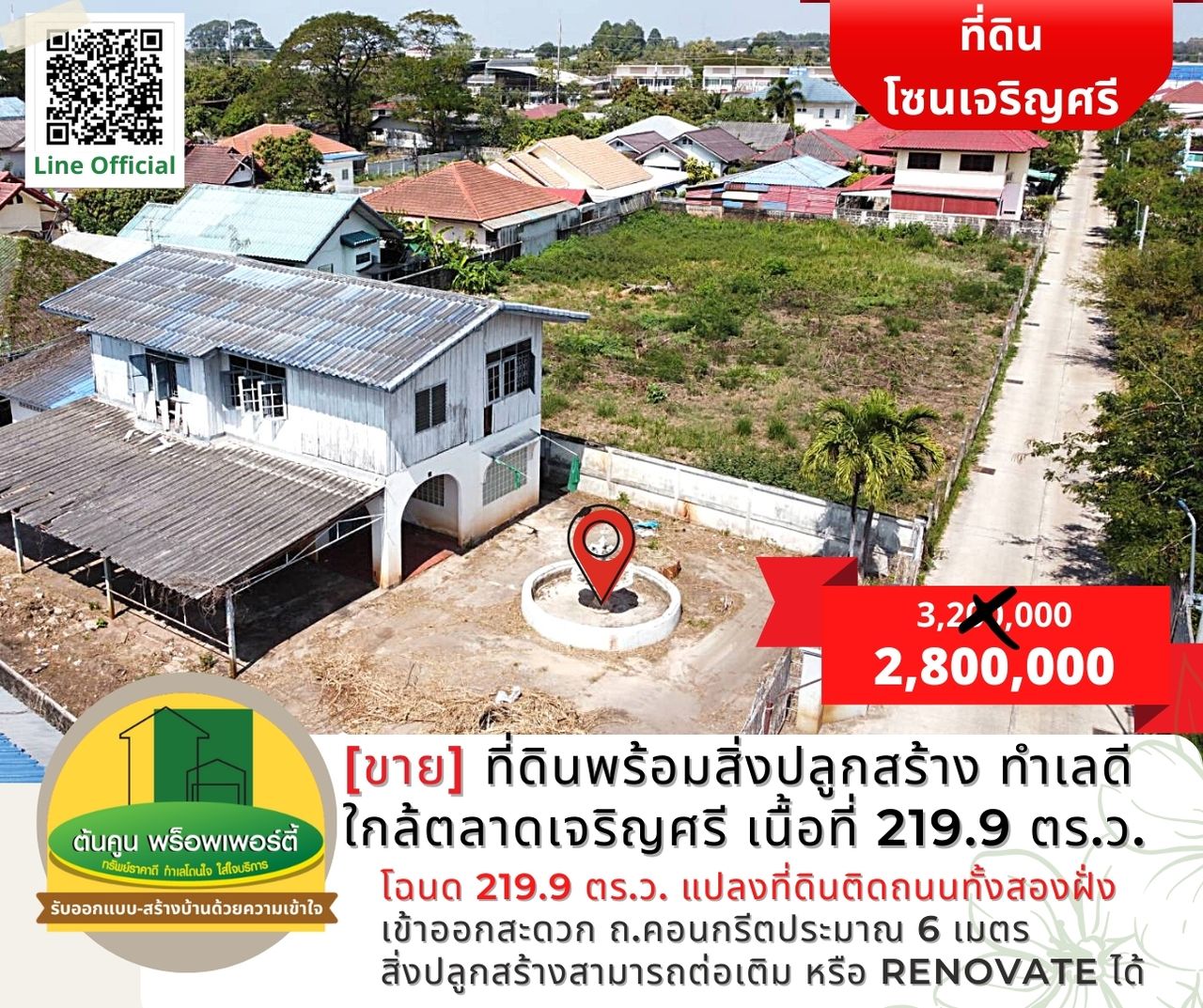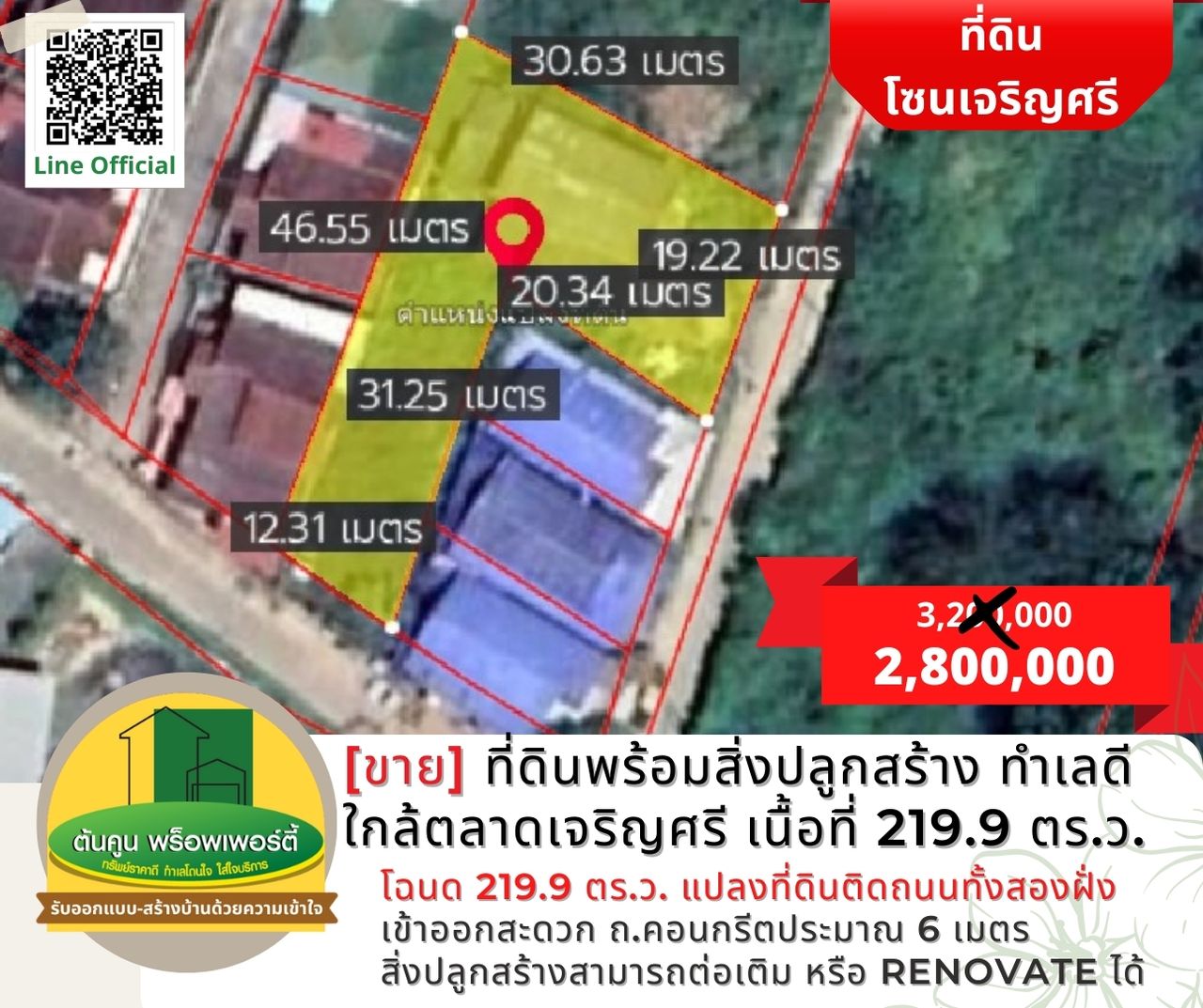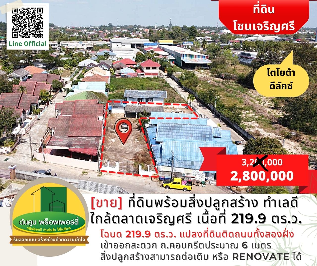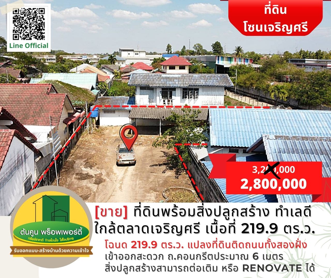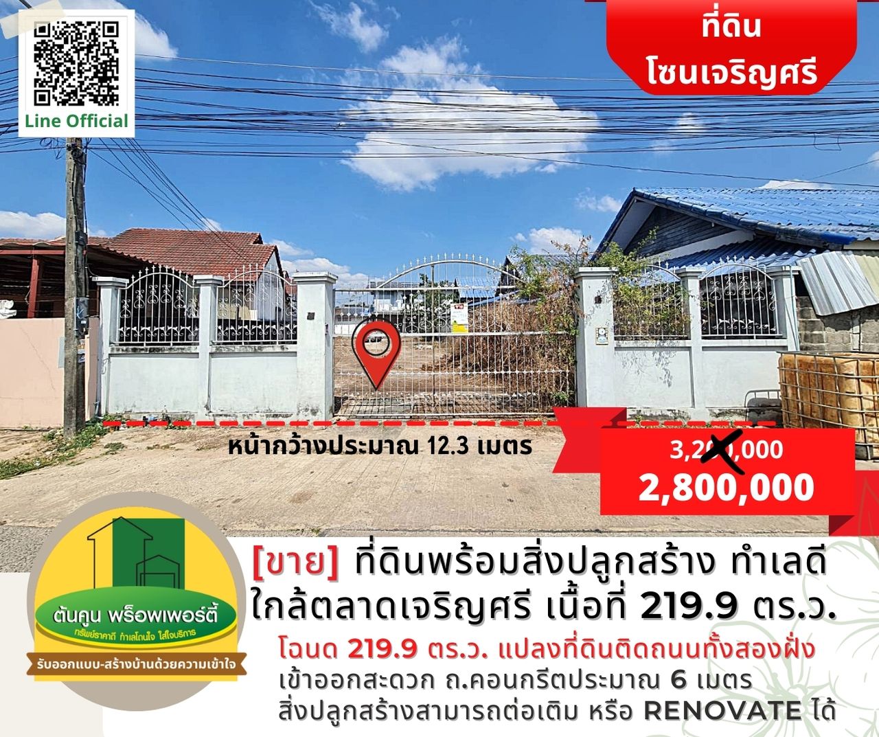 ราคาพิเศษ! ขายที่ดินพร้อมสิ่งปลูกสร้าง ทำเลดี ใกล้ตลาดเจริญศรี เนื้อที่ 219.9 ตร.ว.
