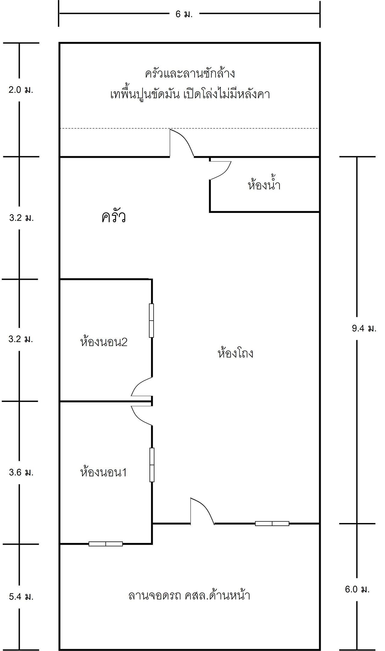 ทาวน์เฮ้าส์ชั้นเดียว ประกอบด้วย 2 ห้องนอน 1 ห้องน้ำ 1 ห้องครัว และพท.ซักล้าง