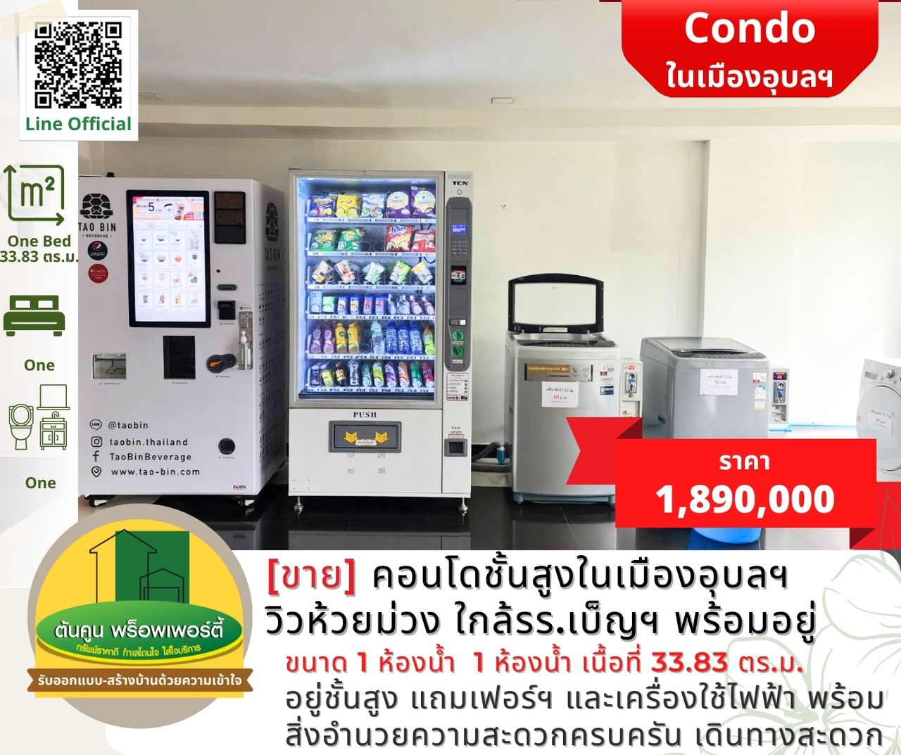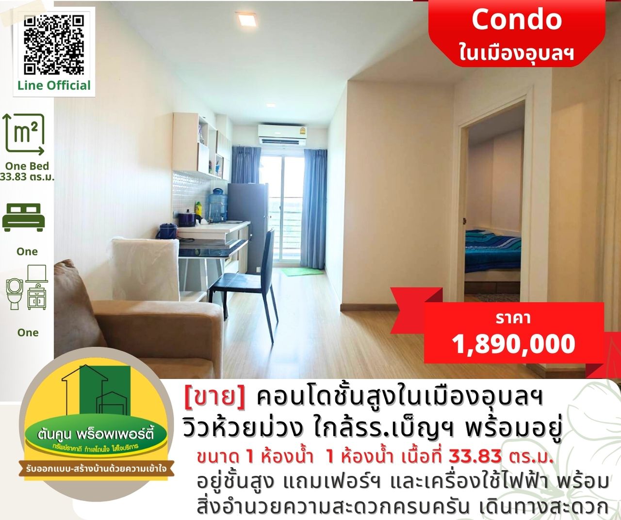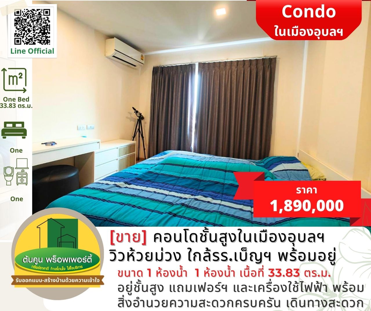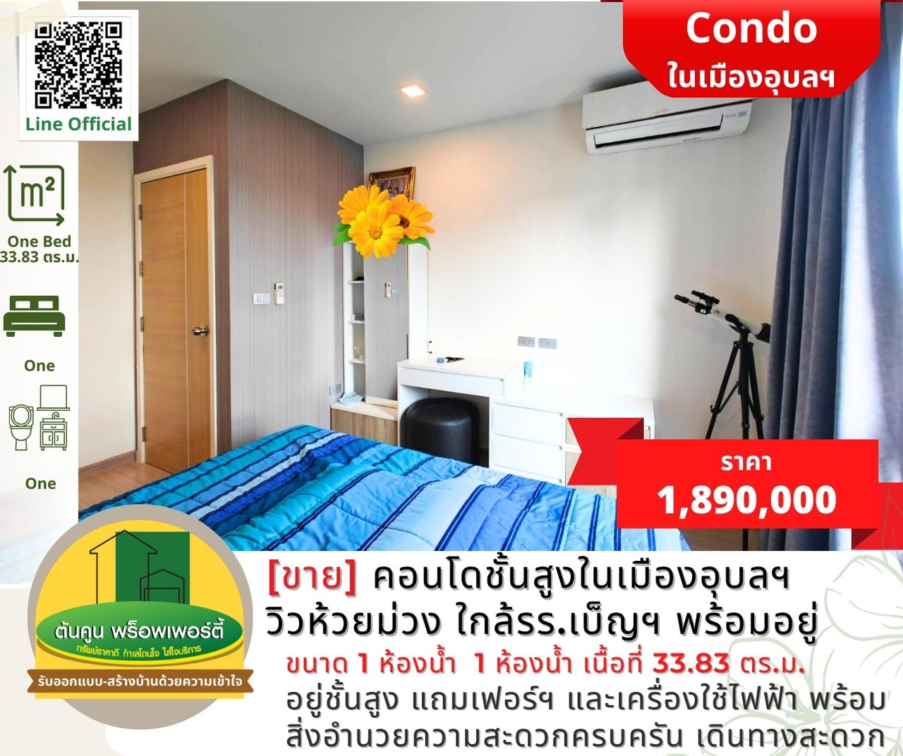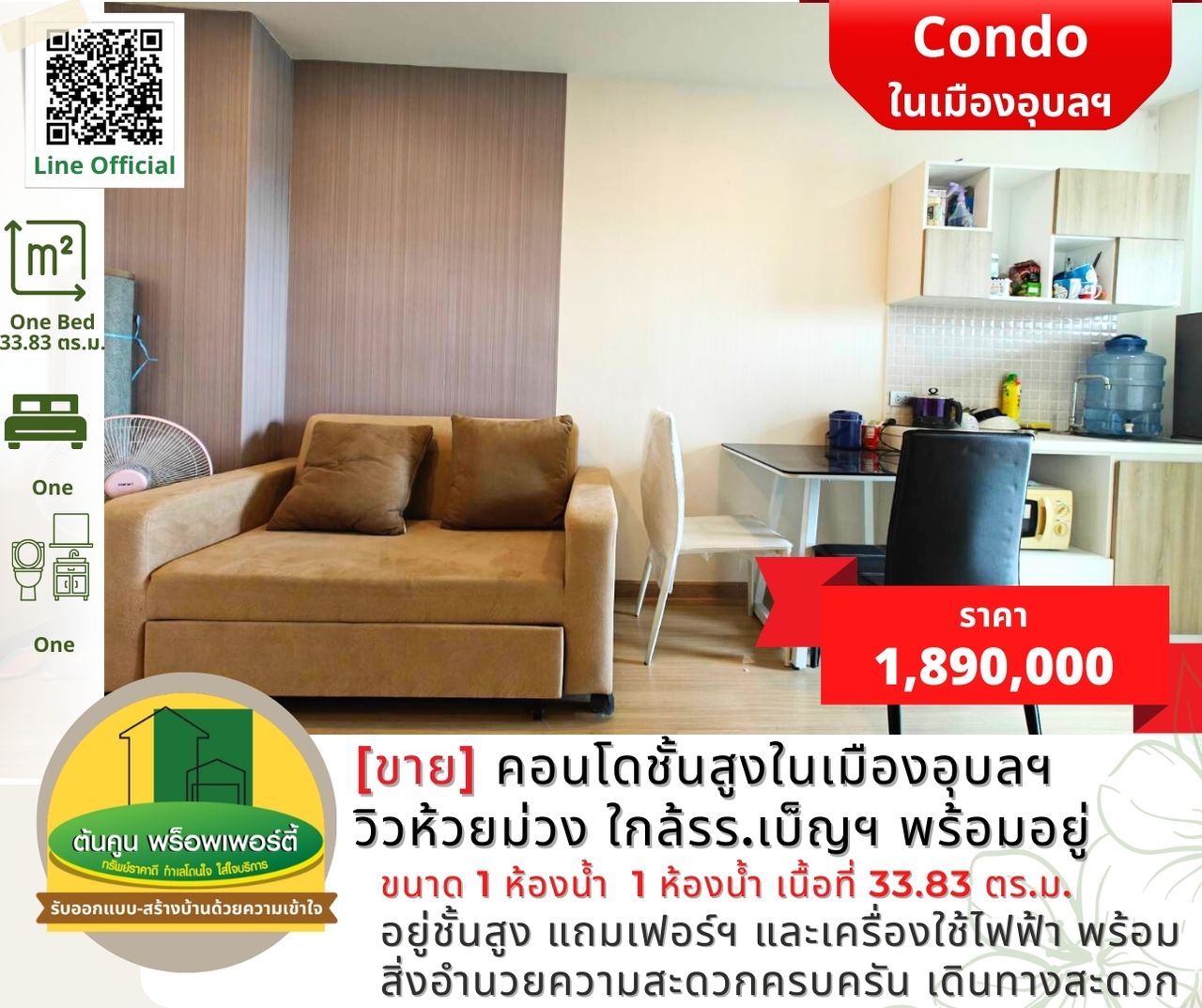 [vาย] คอนโดชั้นสูงในเมืองอุบลฯ วิวห้วยม่วง สภาพสวย พร้อมอยู่ ใกล้รร.เบ็ญจะมะ