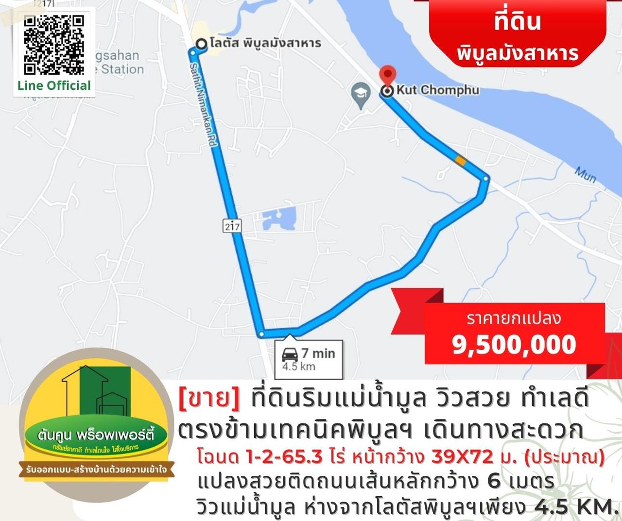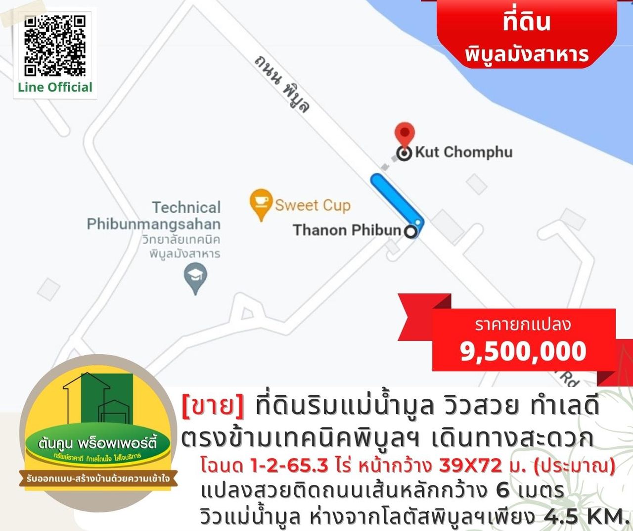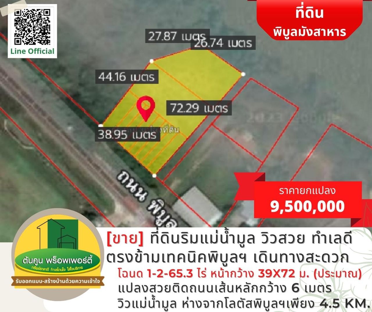 [ขาย] ที่ดินริมแม่น้ำมูล วิวสวย ทำเลดีอยู่ตรงข้ามเทคนิคพิบูลฯ เดินทางสะดวก