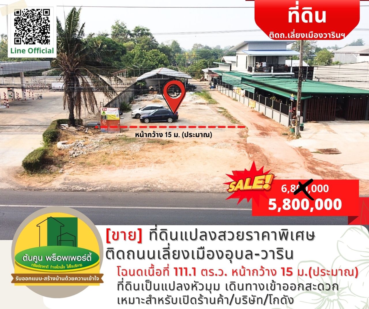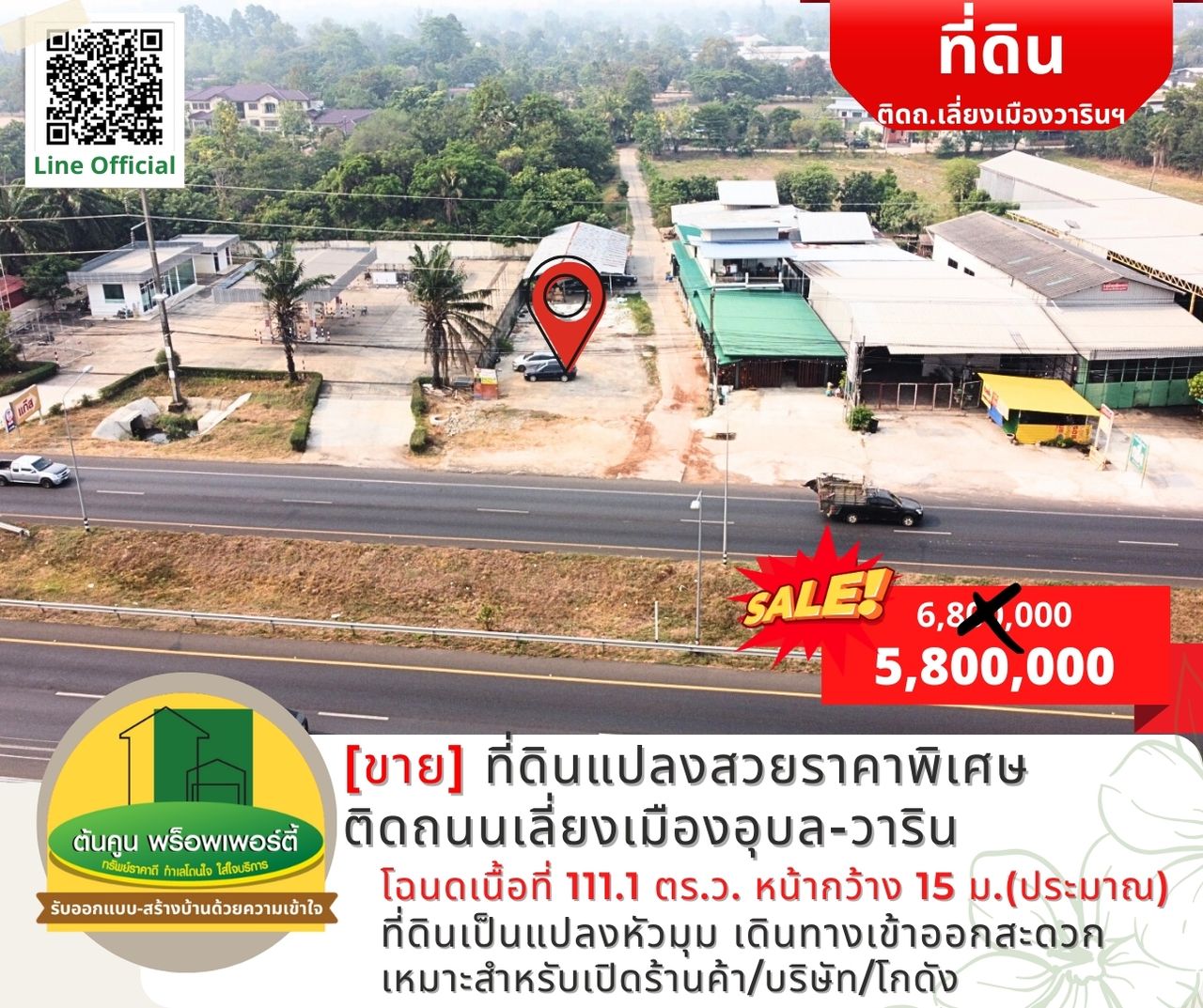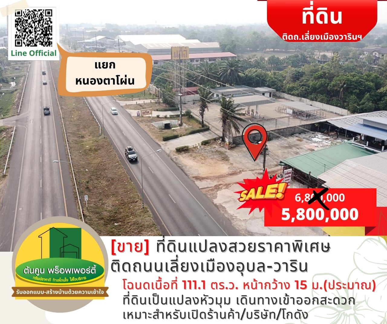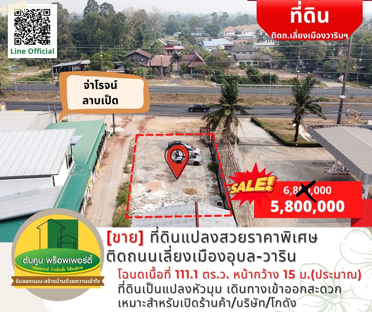 [ขาย] ที่ดินแปลงสวย #ราคาพิเศษ ติดถนนเลี่ยงเมืองอุบล-วาริน ขนาด 111.1 ตร.ว. ทำเลดี เมืองวารินฯ